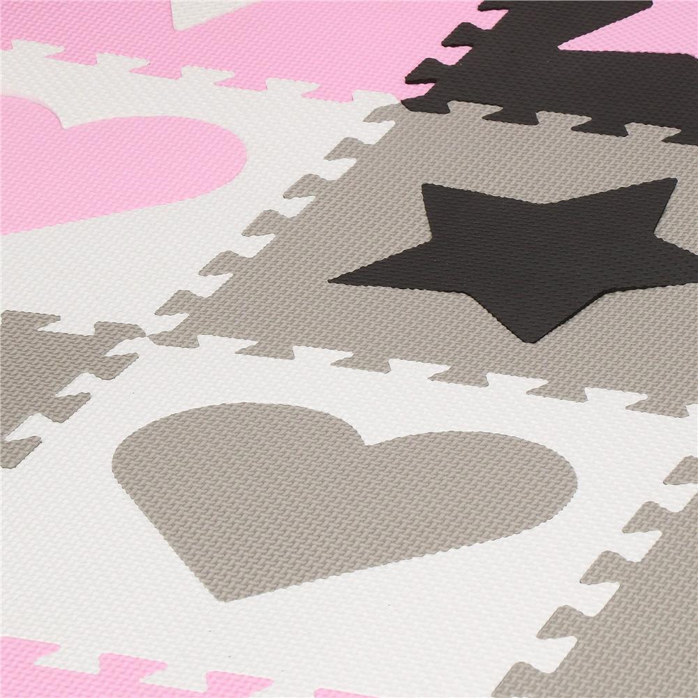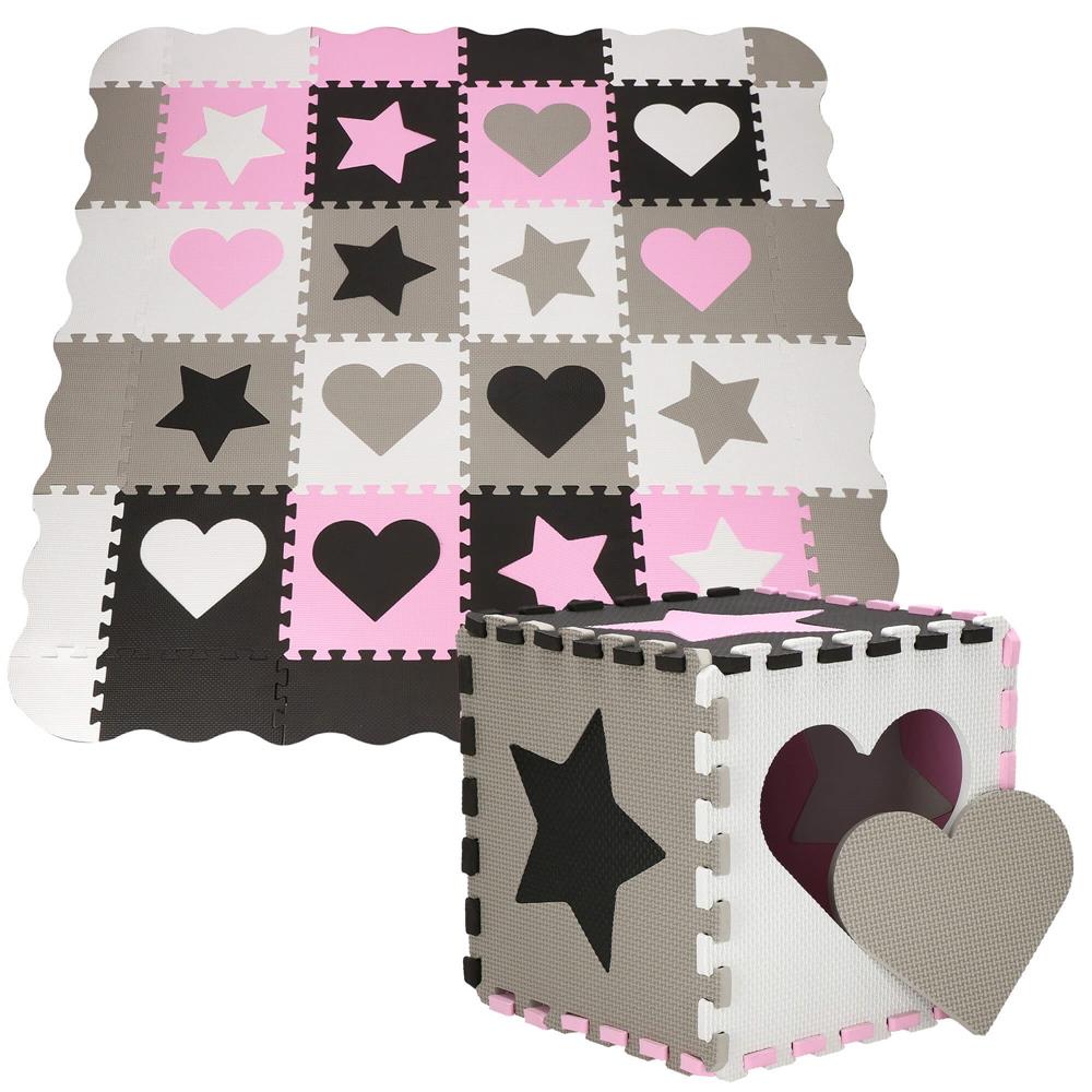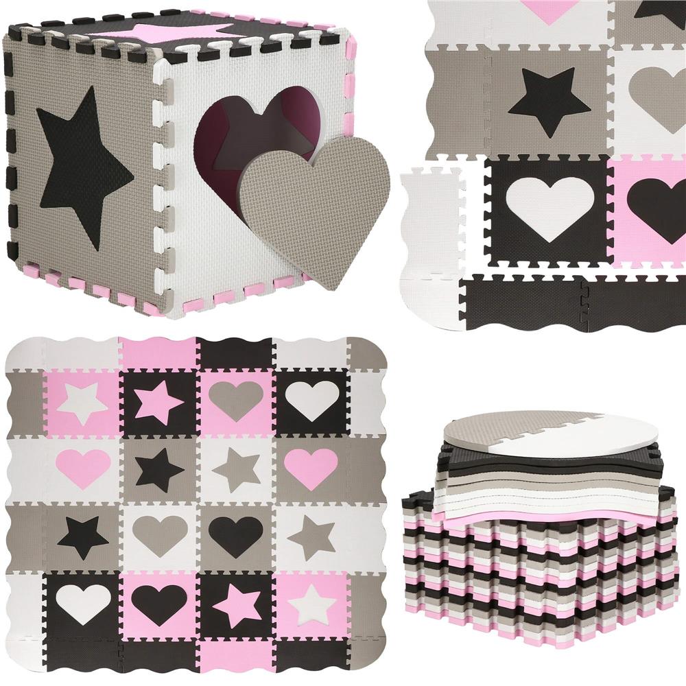 Covor din spuma pentru copii, tip puzzle forme, 52 piese, termoizolant, 150x150 cm, gri roz Household NewTrend