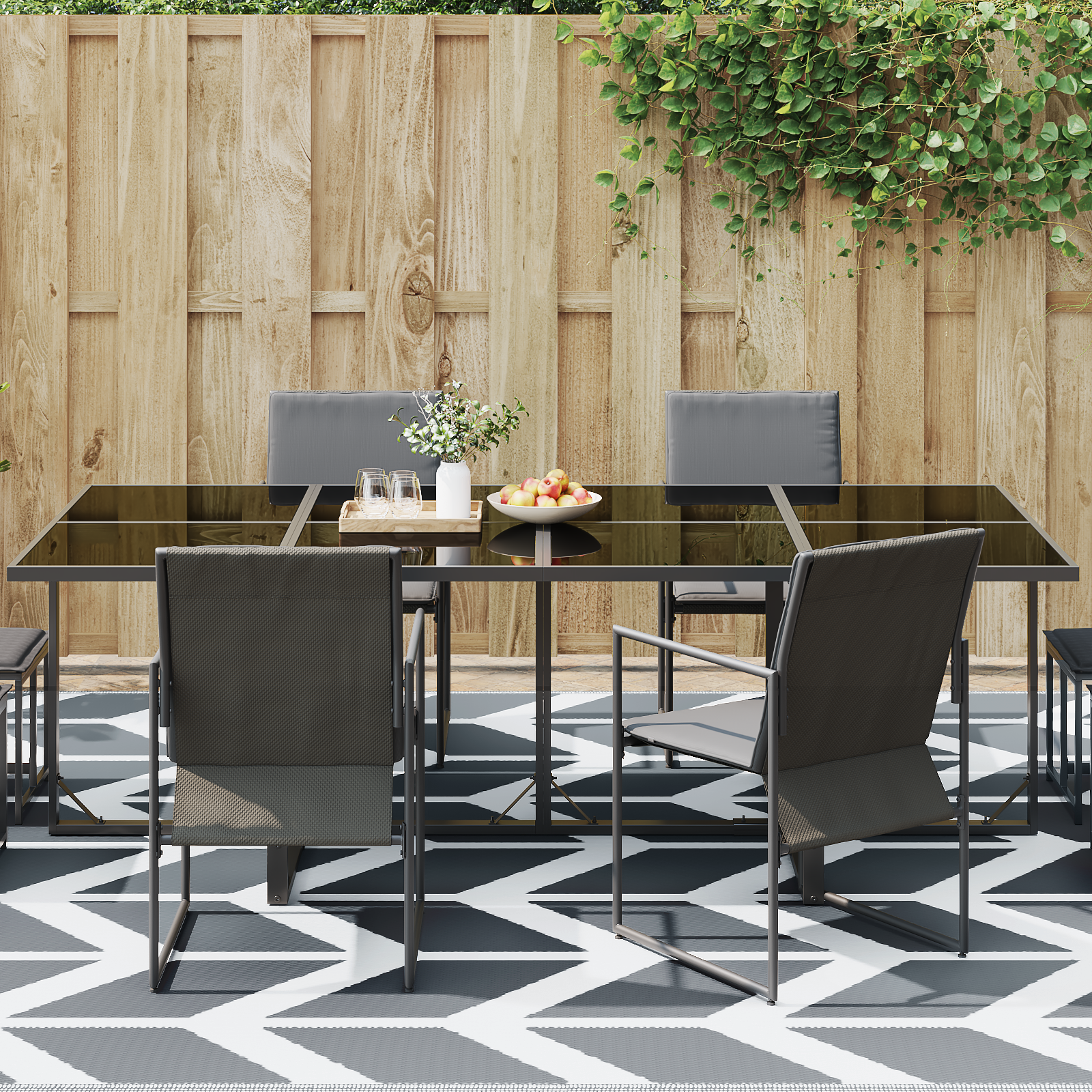- Estetică Elegantă: Cu un design modern în dungi, are un aspect grozav și îndeplinește o funcție practică, aducând un plus de stil în decorul tău exterior.