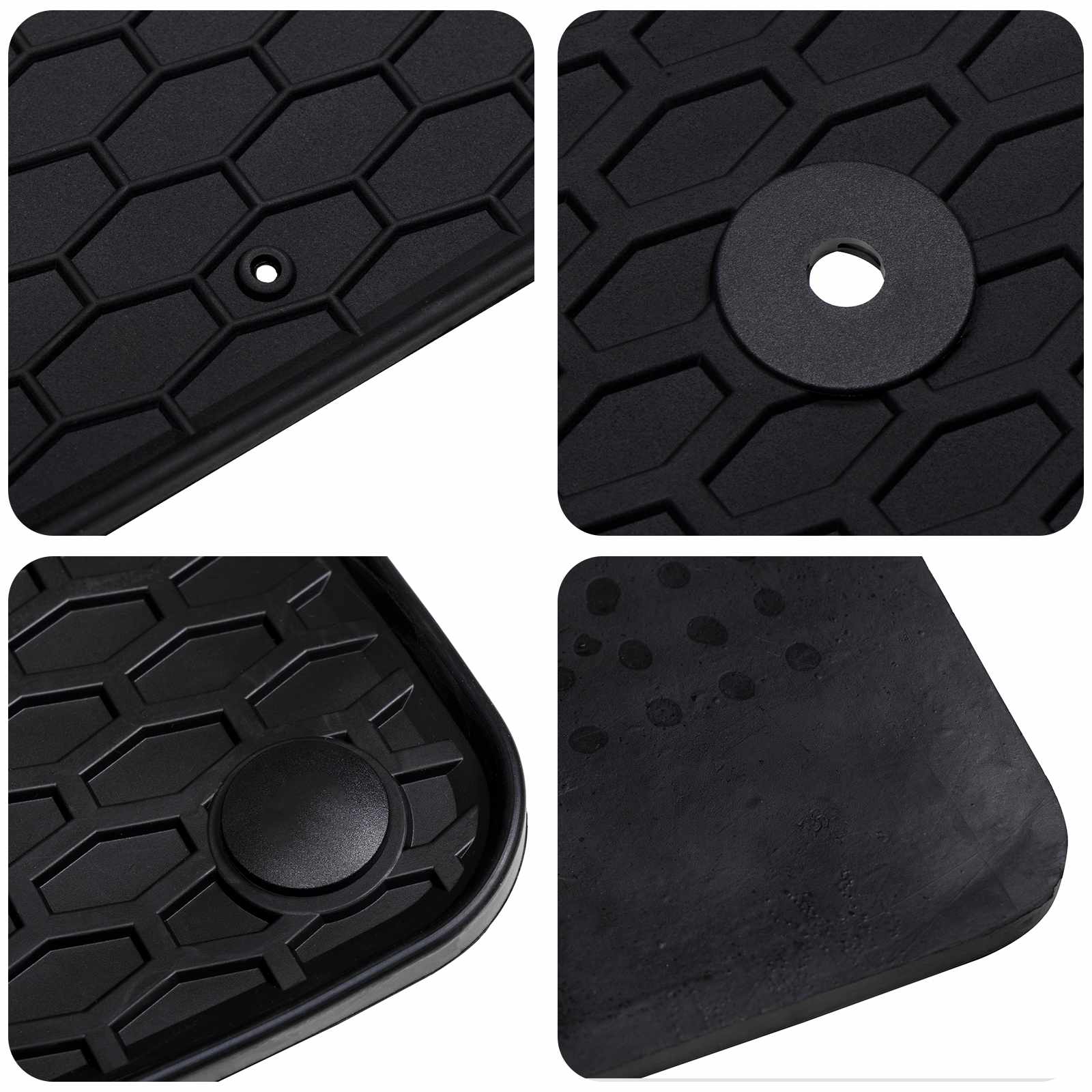 - Antiderapant: Previne alunecarea, adăugând siguranță pentru șoferi și pasageri. Menține covorașele în poziție, chiar și cu mișcarea vehicului.