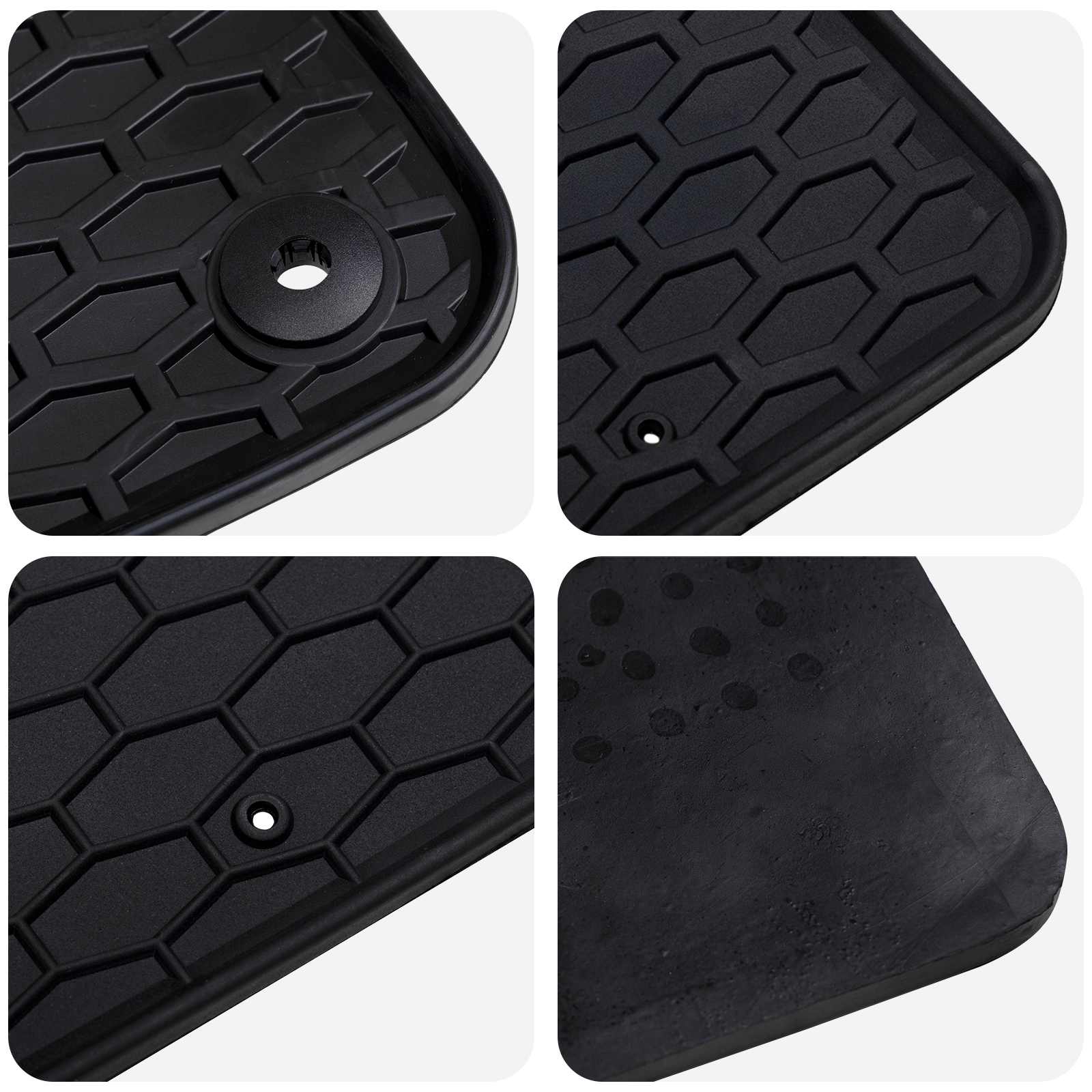 - Bază antiderapantă Aceste covorașe rămân bine fixate, chiar și în momentele mai delicate, cum ar fi opririle bruște. Aceasta îți va asigura o experiență de condus stabilă, fără riscuri de alunecare.