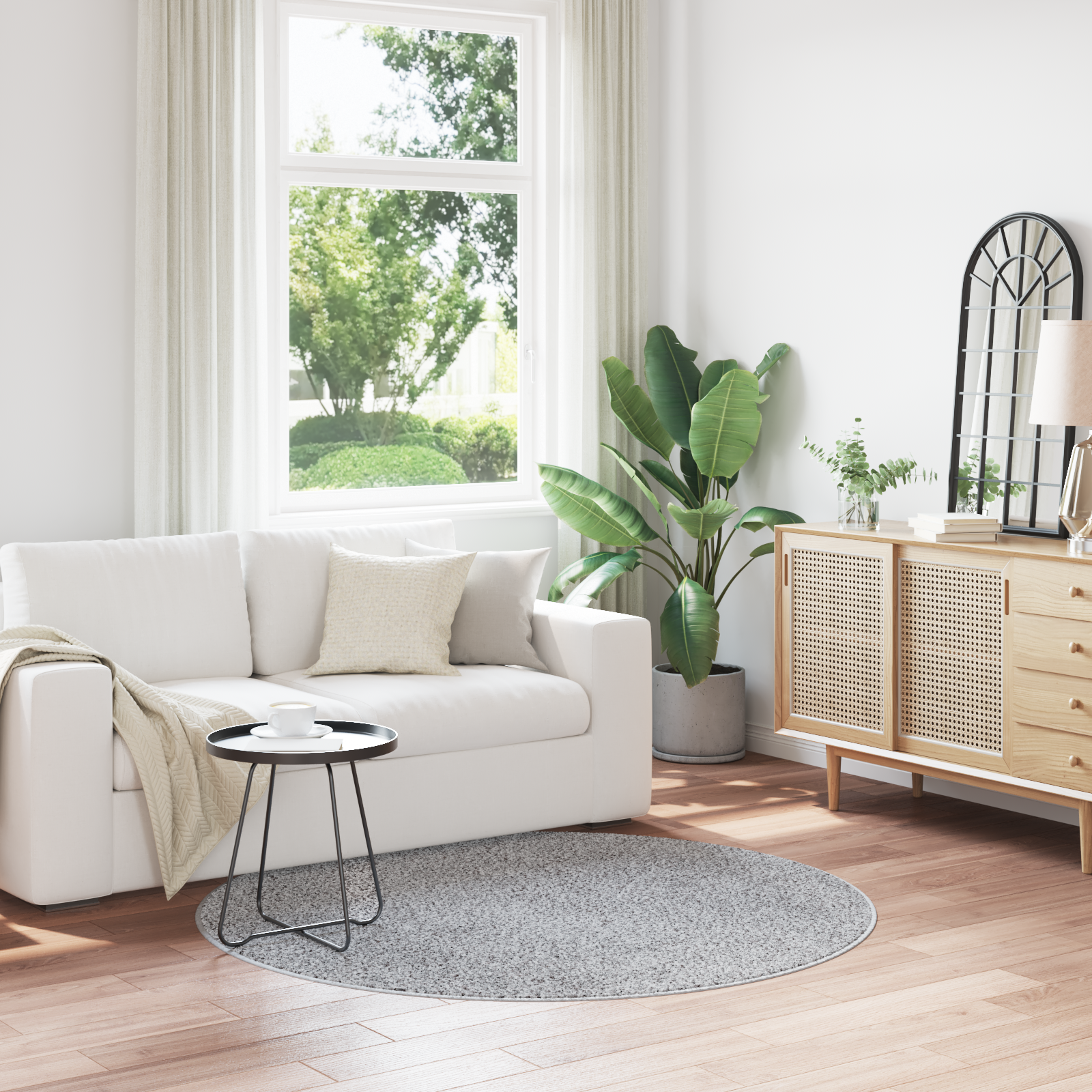 Acest covor rotund din poliester gri aduce un vibe confortabil în orice living sau dormitor datorită designului său modern și elegant. Țesătura din poliester moale face nu doar să arate bine, dar și să ofere o suprafață plăcută, perfectă pentru relaxare sau pentru a primi oaspeți.
