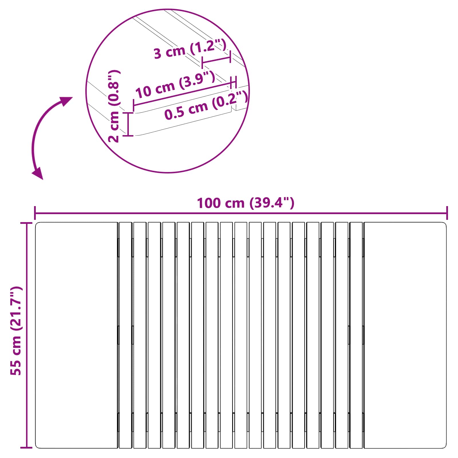Acest covoraș din lemn transformă baia în una minimalistă, combinând stilul cu utilitatea. Textura sa netedă și designul simplu se încadrează perfect în orice decor, oferind o estetică plăcută și o suprafață anti-derapantă pentru confort și siguranță.
