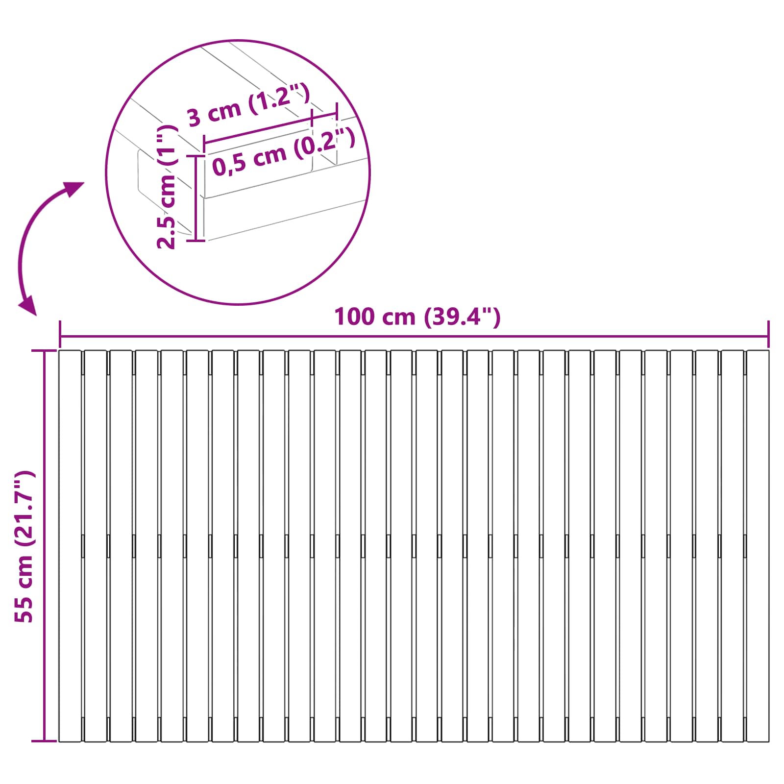 - Componente incluse: Covorul are un design ventilat, care permite o uscare rapidă, păstrând igiena. Slats-urile de lemn sunt spațiate astfel încât să permită circulația aerului, prevenind acumularea de apă.