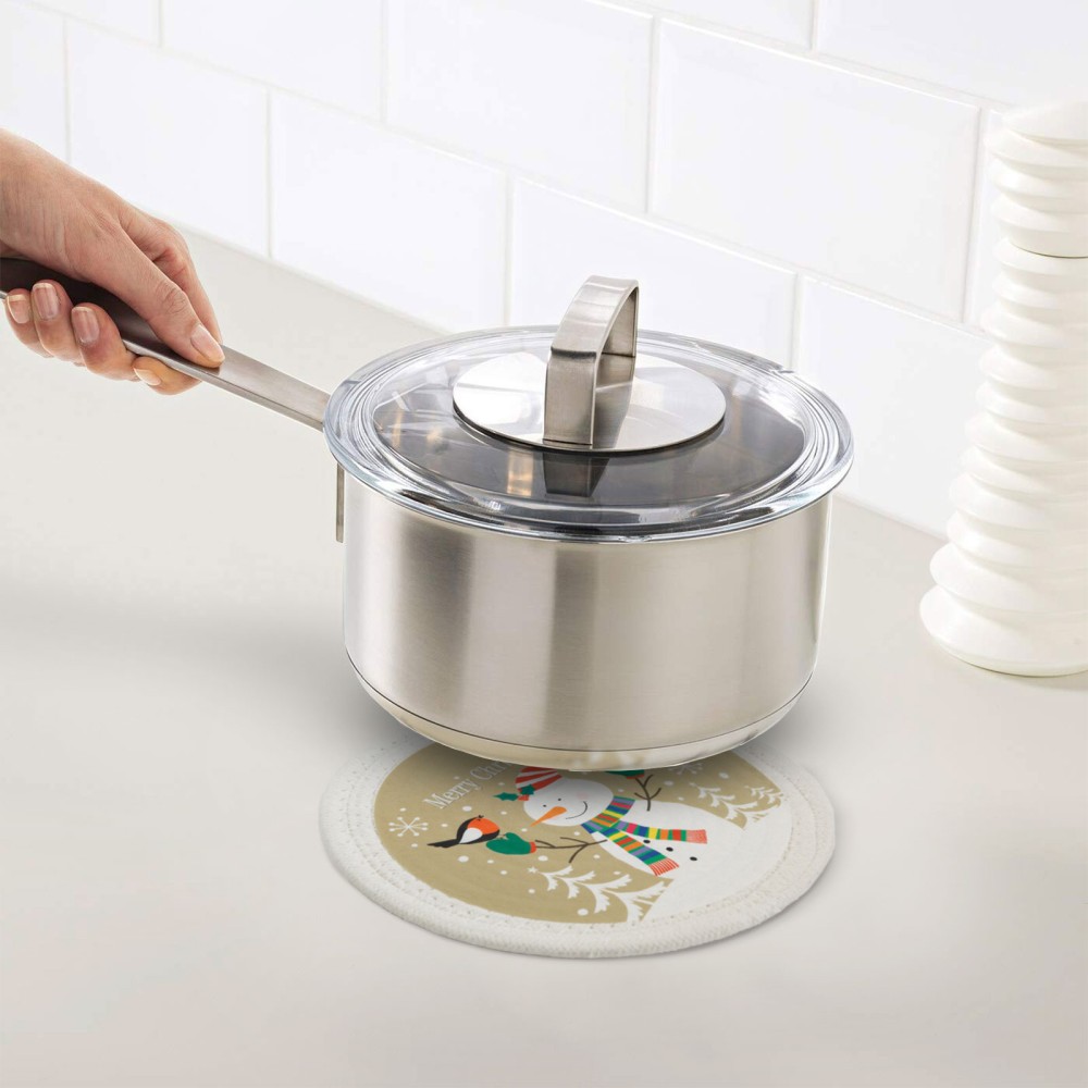 Covoraș de masă de Crăciun din material textil, care împiedică deteriorarea mesei și blatului dumneavoastră de vasele fierbinți. Acesta se potrivește în decorul mesei festive, astfel încât armonia poate fi completă.