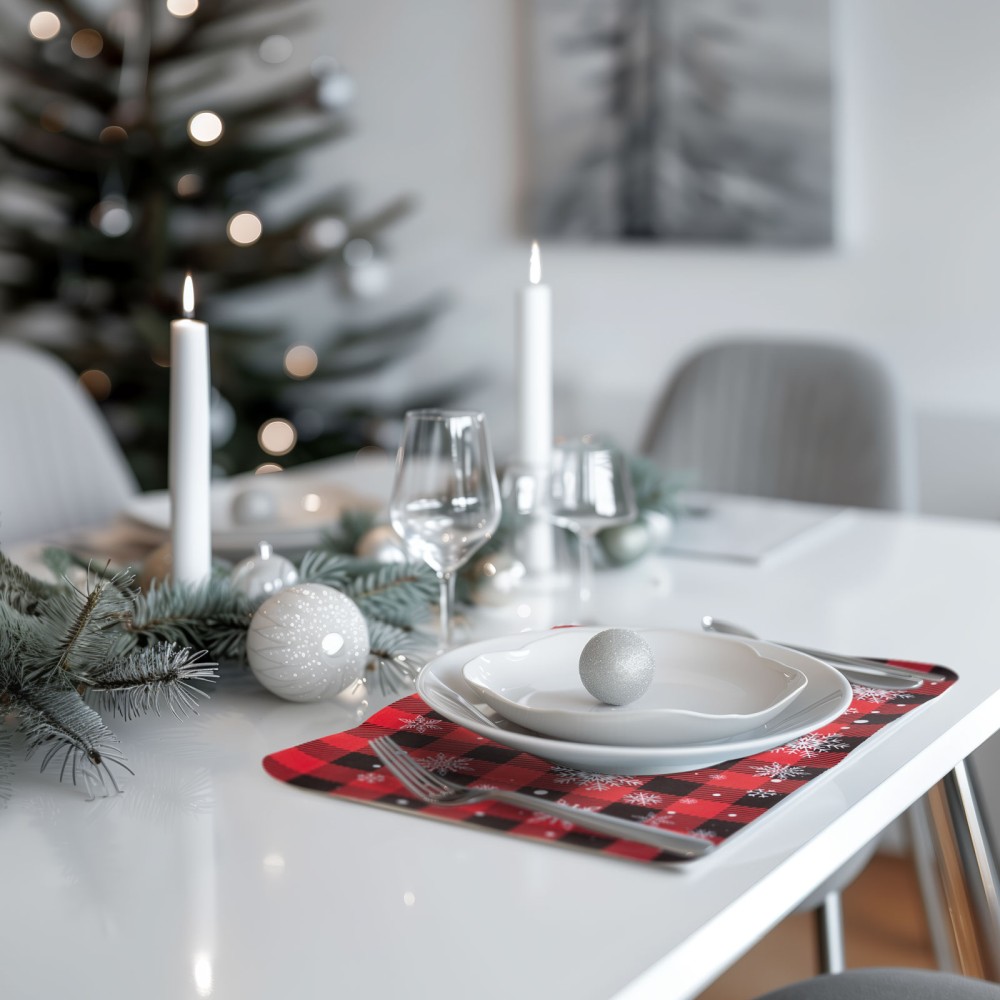 Covorașul pentru farfurie este de asemenea, o necesitate pentru masa festivă. Model fulgi de nea pentru a crea o atmosferă simplă de sărbătoare.