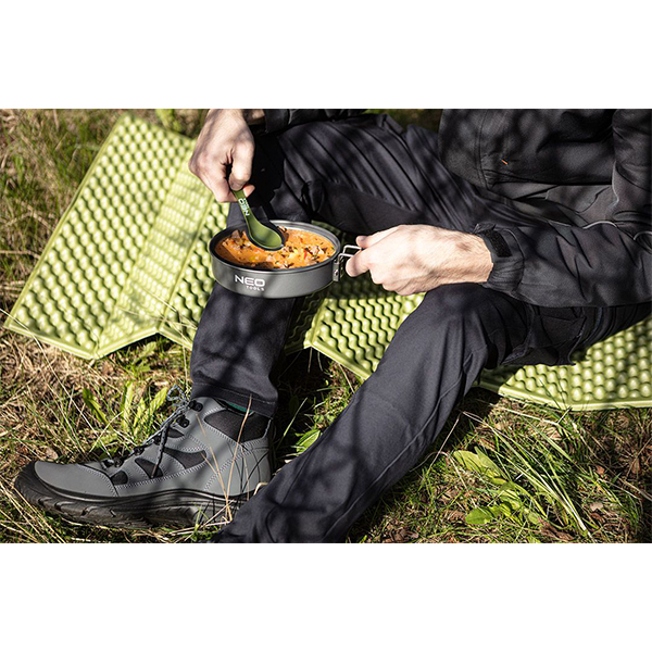 potrivit pentru orice aventurier in aer liber. Cu dimensiunile sale impresionante atunci cand este desfasurat (185 x 56 x 1,8 cm), acesta ofera conditii confortabile de dormit sau sedere, iar atunci cand este pliat (12 x 56 x 15 cm) devine extrem de compact pentru transport si depozitare usoara. - Cantarind doar 320 g, covorasul este atat usor, cat si durabil. Are o rezistenta ridicata la apa si o izolare termica excelenta fata de sol, ceea ce este esential atunci cand dormiti intr-un cort sau va odihniti pe un sol rece. Aceste proprietati ofera protectie impotriva vremii umede si reci.