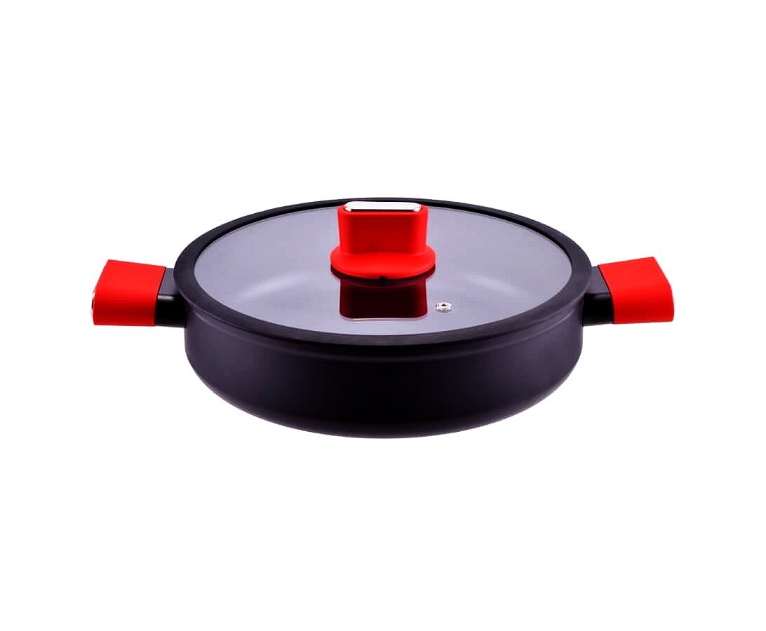 Cratita joasa antiaderenta 28 cm, 4.5 L, pentru inductie, cu capac din sticla