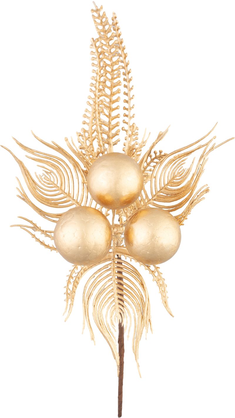 Descriere Crenguță decorativă Crăciun aurie pene păun,