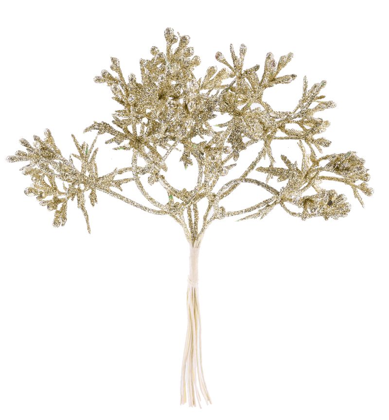 Crenguță decorativă de Crăciun aurie MagicHome, 15 cm, set 6 buc