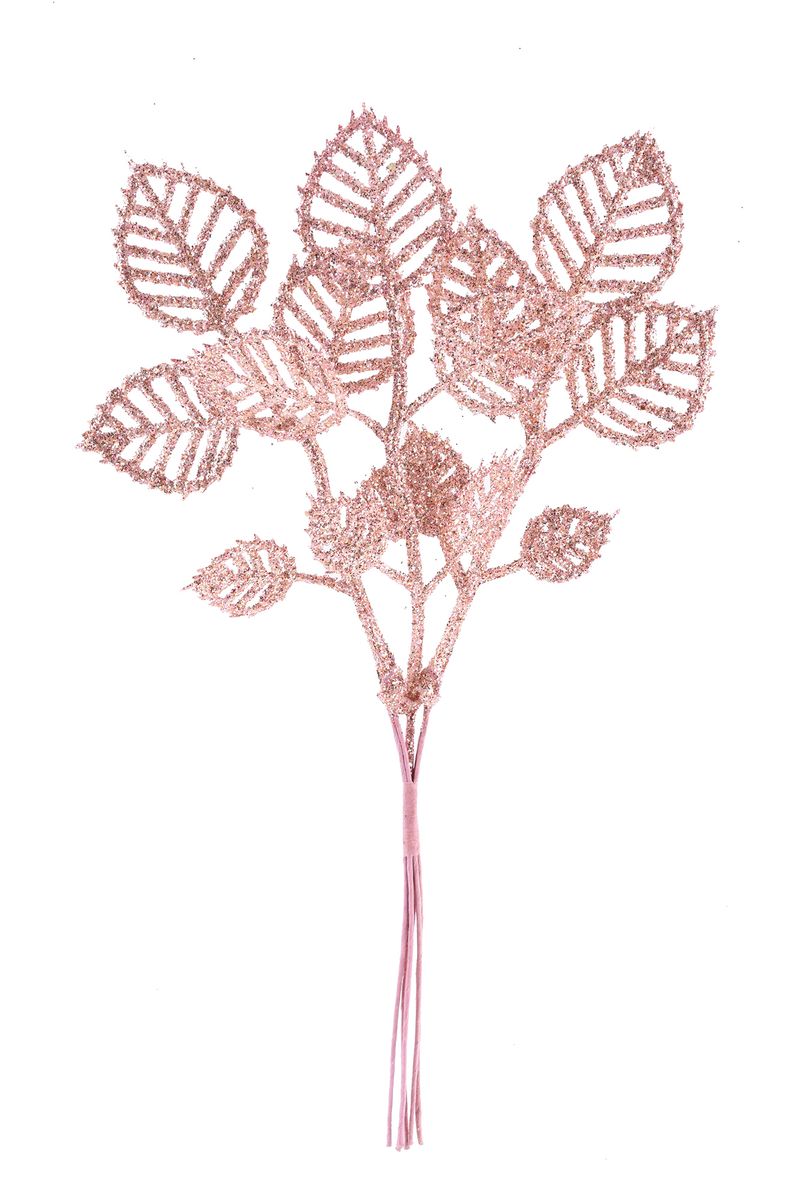 Crenguță decorativă de Crăciun cu frunze roz auriu, 22 cm, set 6 bucăți
