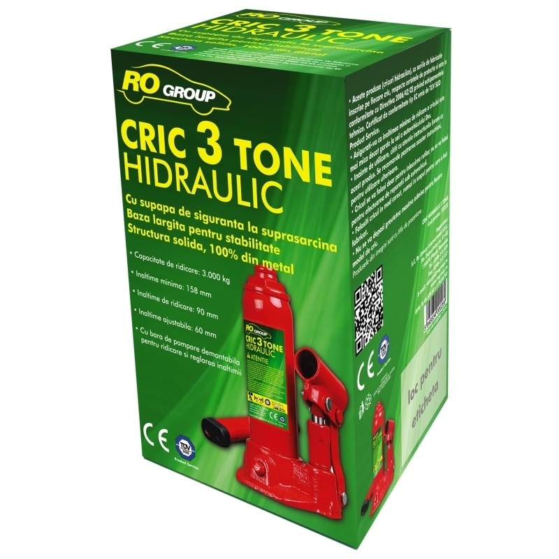 Cric hidraulic RoGroup 3T cu supapă de siguranță și bază stabilă