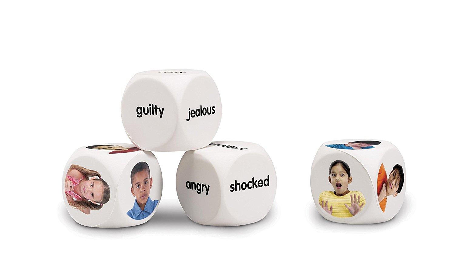 Mod de utilizare: copilul aruncă unul sau mai multe cuburi, observă imaginea sau cuvântul apărut și descrie emoția, oferă un exemplu personal ori identifică expresia potrivită. Produsul este util în jocuri educative, ore de dezvoltare personală și discuții ghidate părinte-copil.