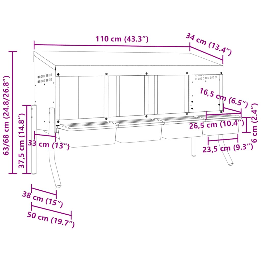 Cuib pentru găini cu 4 compartimente și picioare, oțel galvanizat GartenMobel Dekor
