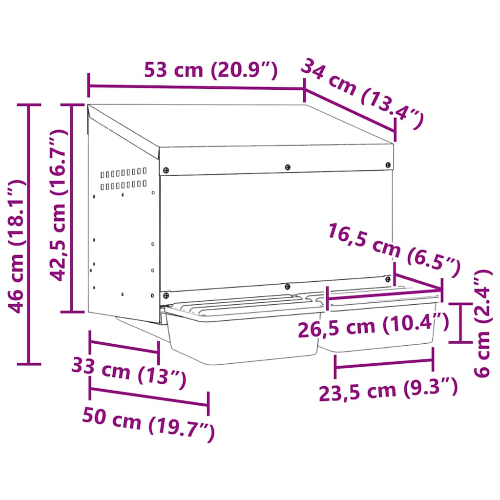 - Material robust și durabil: Fabricat din oțel galvanizat și plastic robust din polipropilenă, acest cuib este construit pentru a rezista, oferind performanță de lungă durată și protecție pentru găinile dvs. împotriva condițiilor exterioare dure.