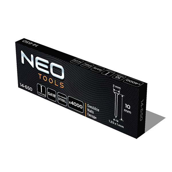 - Cuiele marca NEO sunt galvanizate, ceea ce le face rezistente la coroziune.