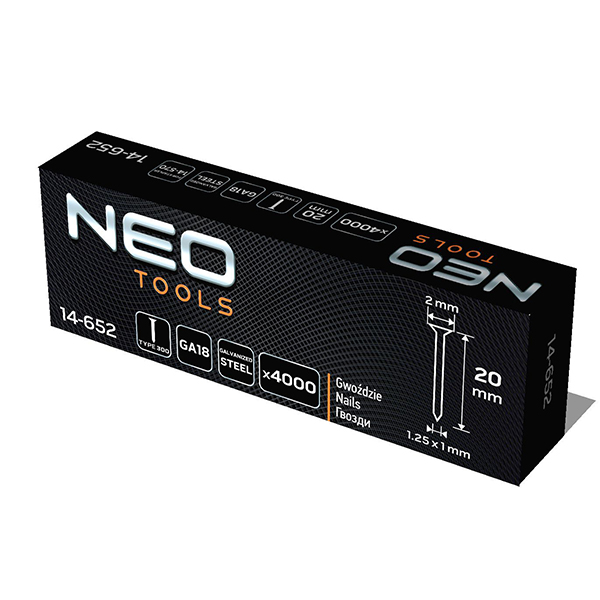 Cuie galvanizate pentru capsator pneumatic 14-570 GA18 tip 300(F) 20mm NEO TOOLS 14-652 HardWork ToolsRange