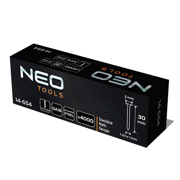 Cuie galvanizate pentru capsator pneumatic 14-570 GA18 tip 300(F) 30mm NEO TOOLS 14-654 HardWork ToolsRange