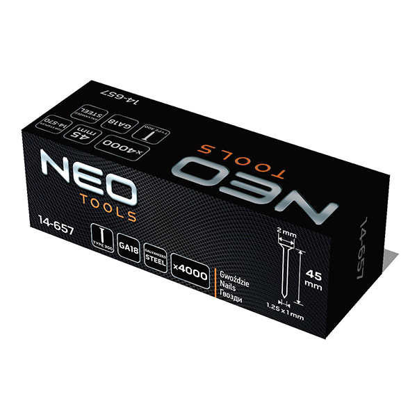 Cuie galvanizate pentru capsator pneumatic 14-570 GA18 tip 300(F) 45mm NEO TOOLS 14-657 HardWork ToolsRange