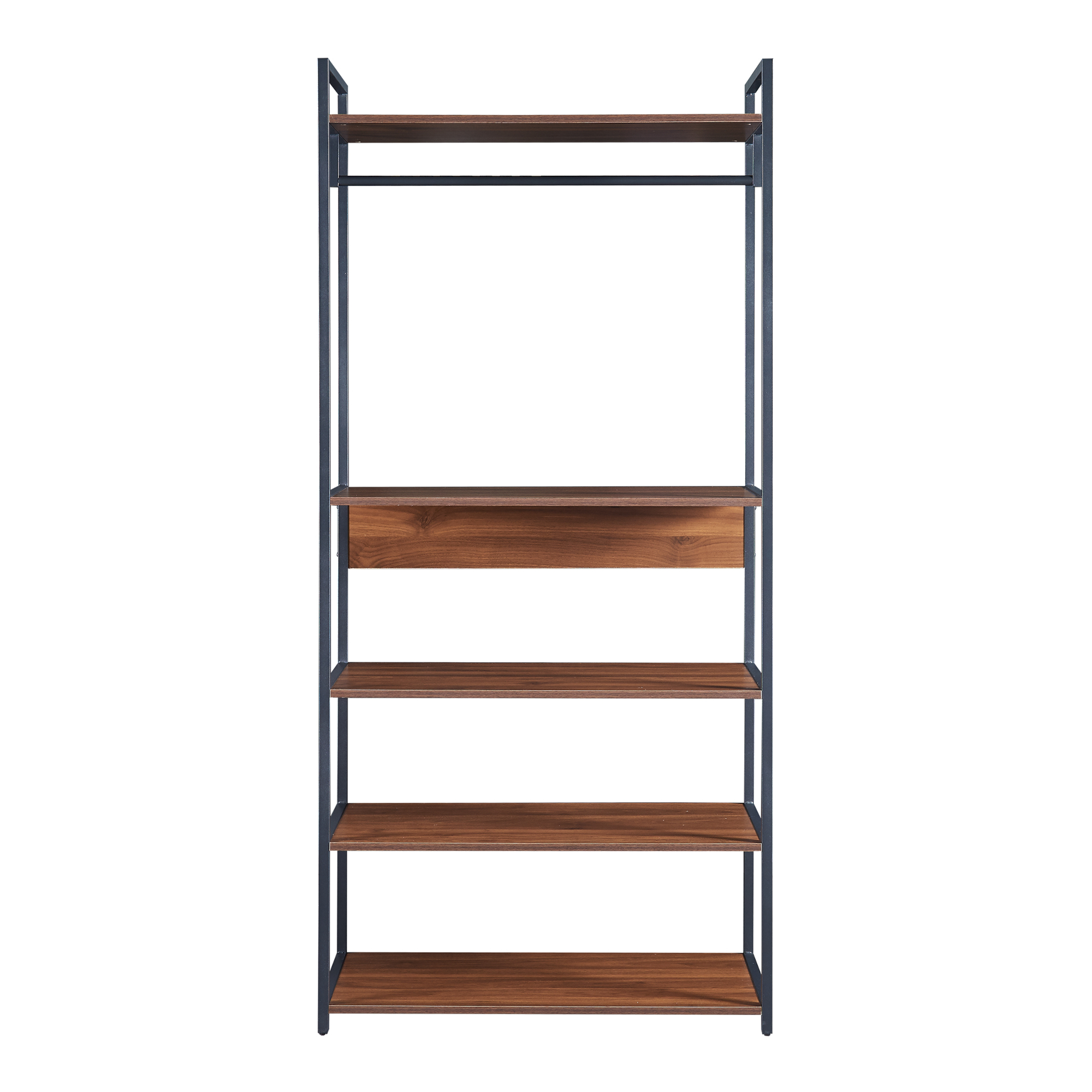 Cuier cu rafturi Larem, 180x84x40 cm, negru cu aspect nuc, [en.casa]