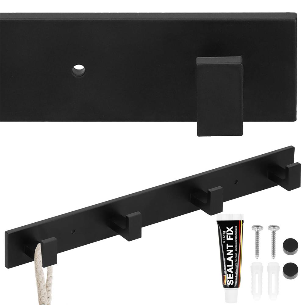 Cuier de baie pentru prosoape cu 2 sisteme instalare, aluminiu, 4 agatatori, 35x4cm, negru Household NewTrend