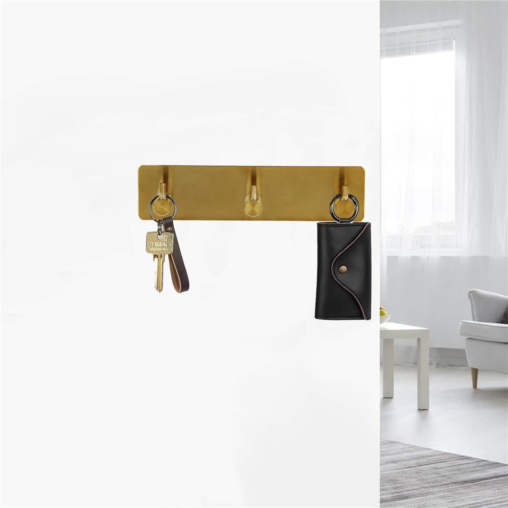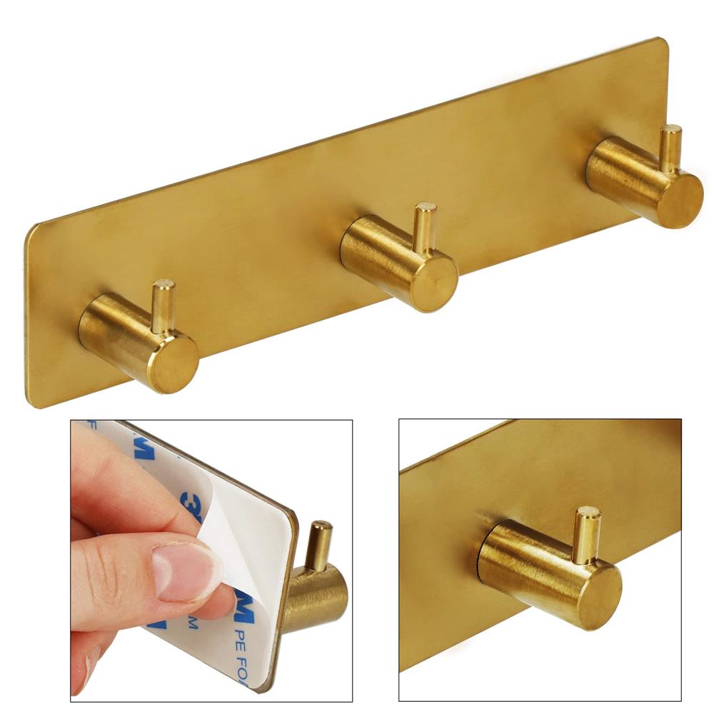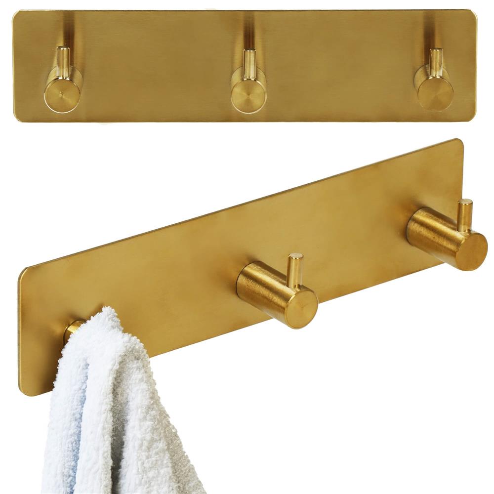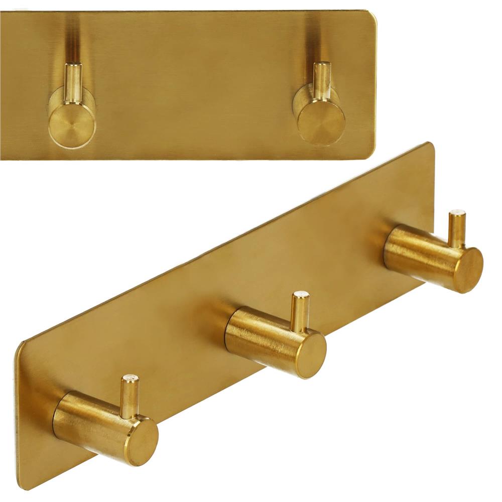 Cuier de baie pentru prosoape, montare fara gaurire, otel, 3 agatatori, 18x4.5cm, auriu Household NewTrend