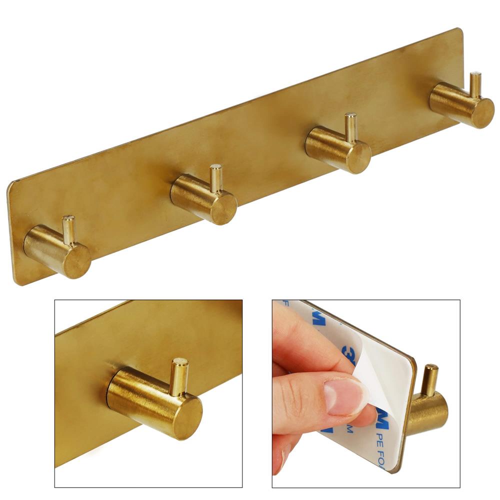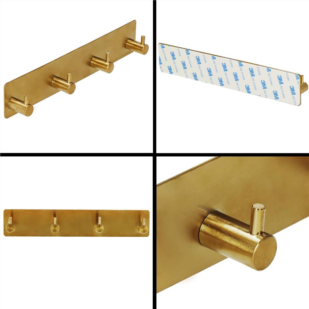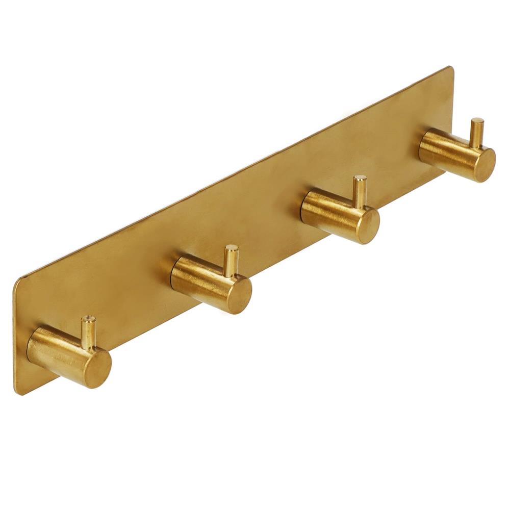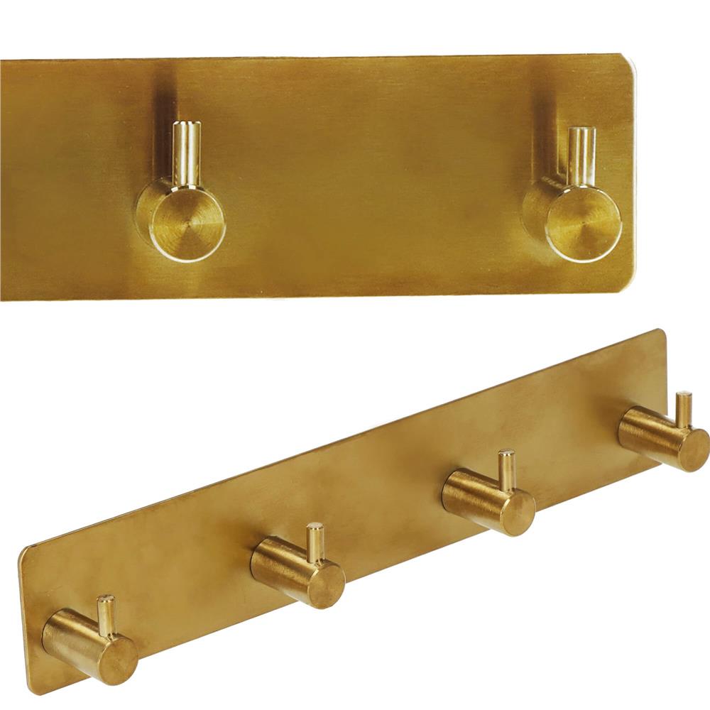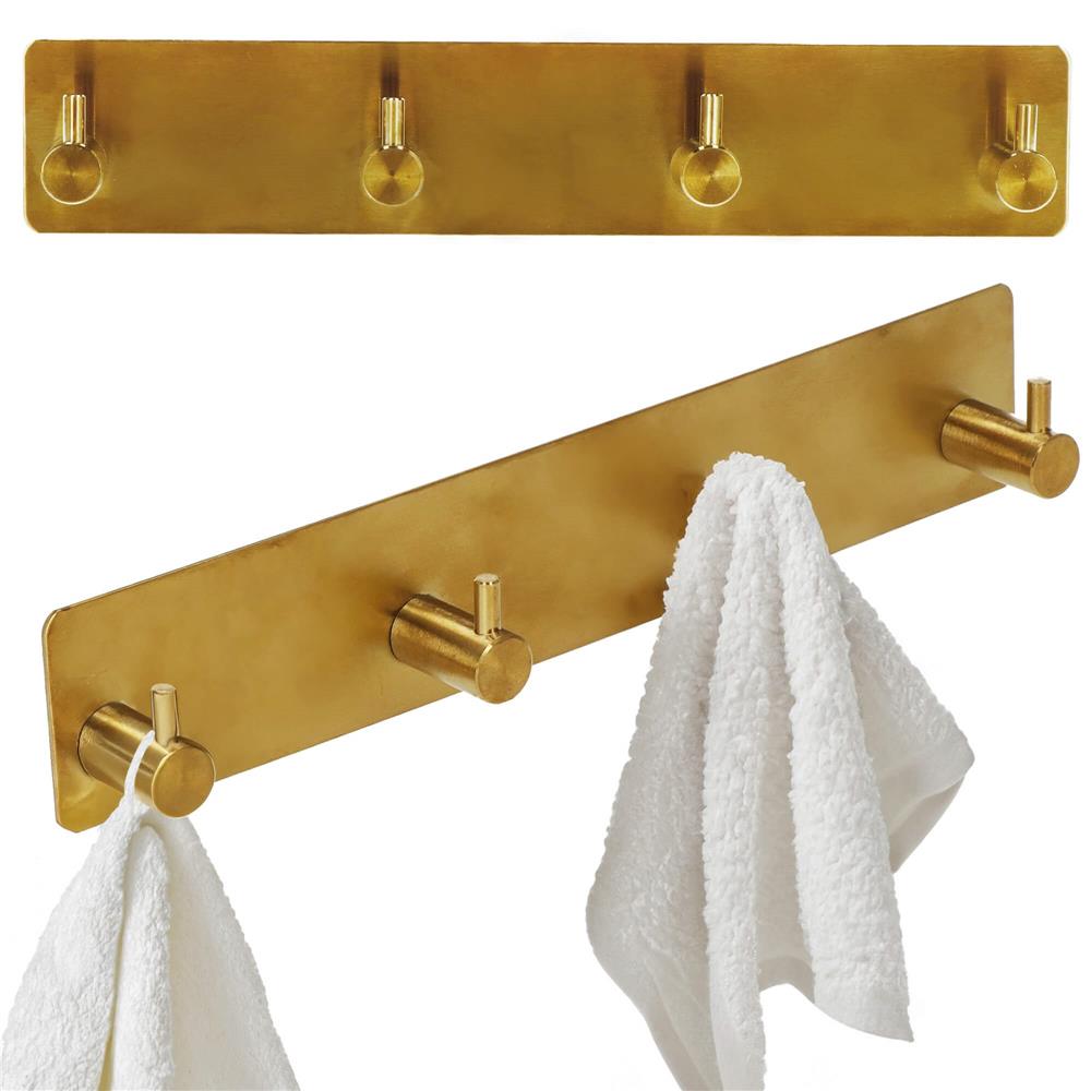 Cuier de baie pentru prosoape, montare fara gaurire, otel, 4 agatatori, 24x4.5cm, auriu Household NewTrend