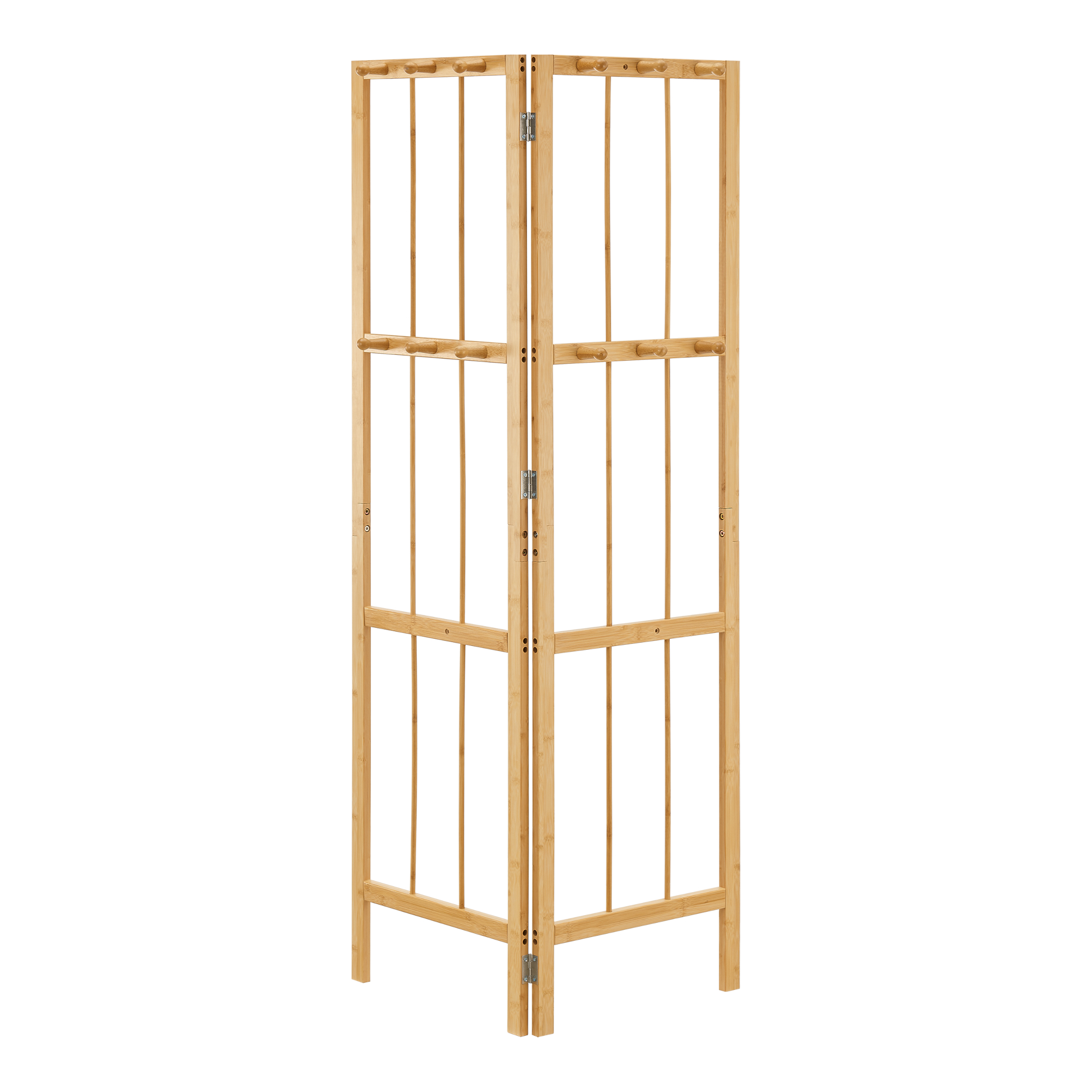 Cuier de colț pliabil Hyllestad din bambus, 12 cârlige, natur