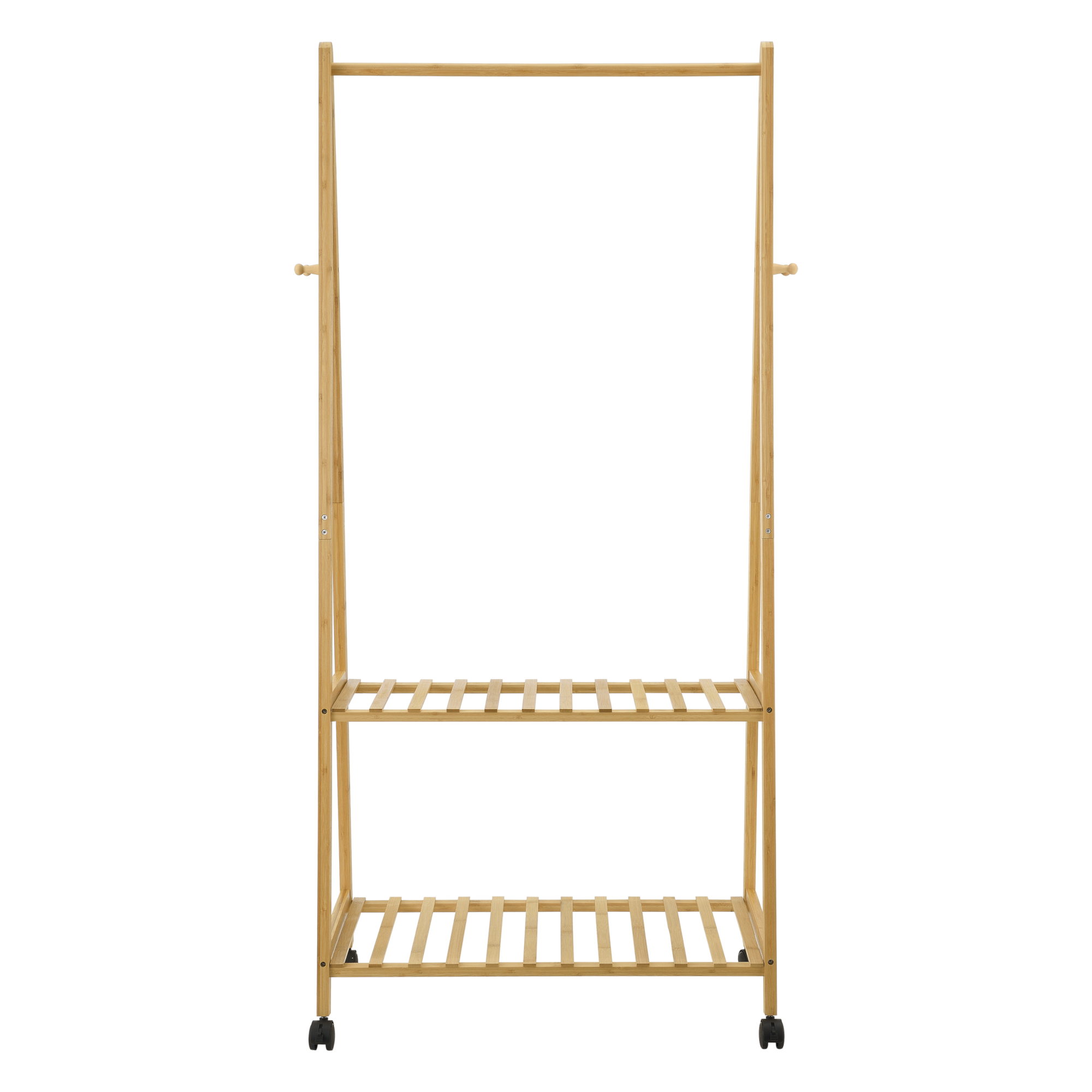 Cuier de haine din bambus cu 2 rafturi și roți Øckero 152 cm