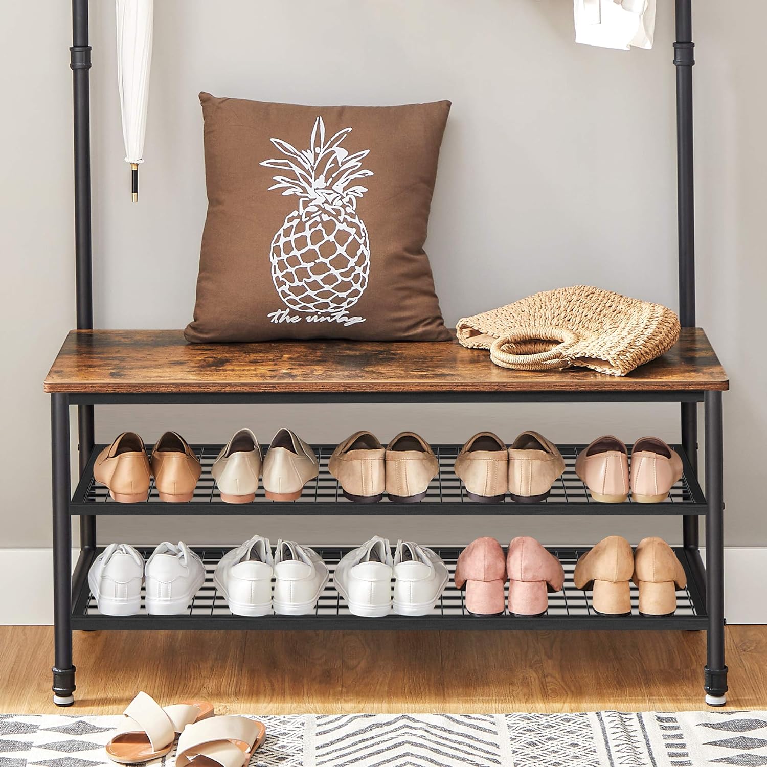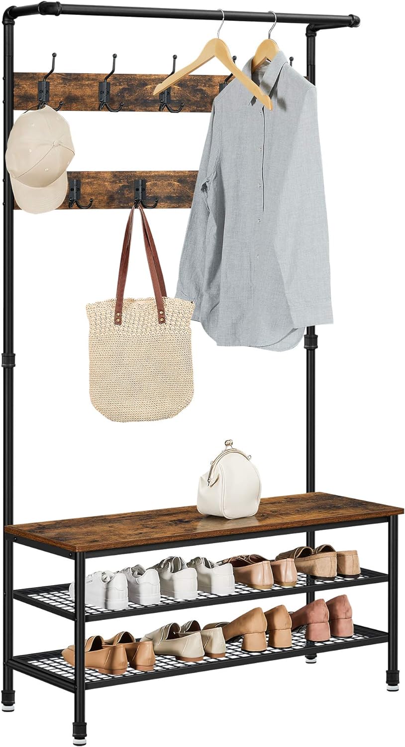 Cuier de hol VASAGLE cu bancă, 9 cârlige și suport pantofi, industrial