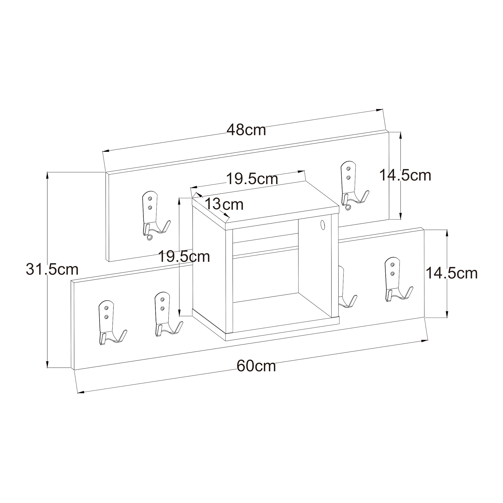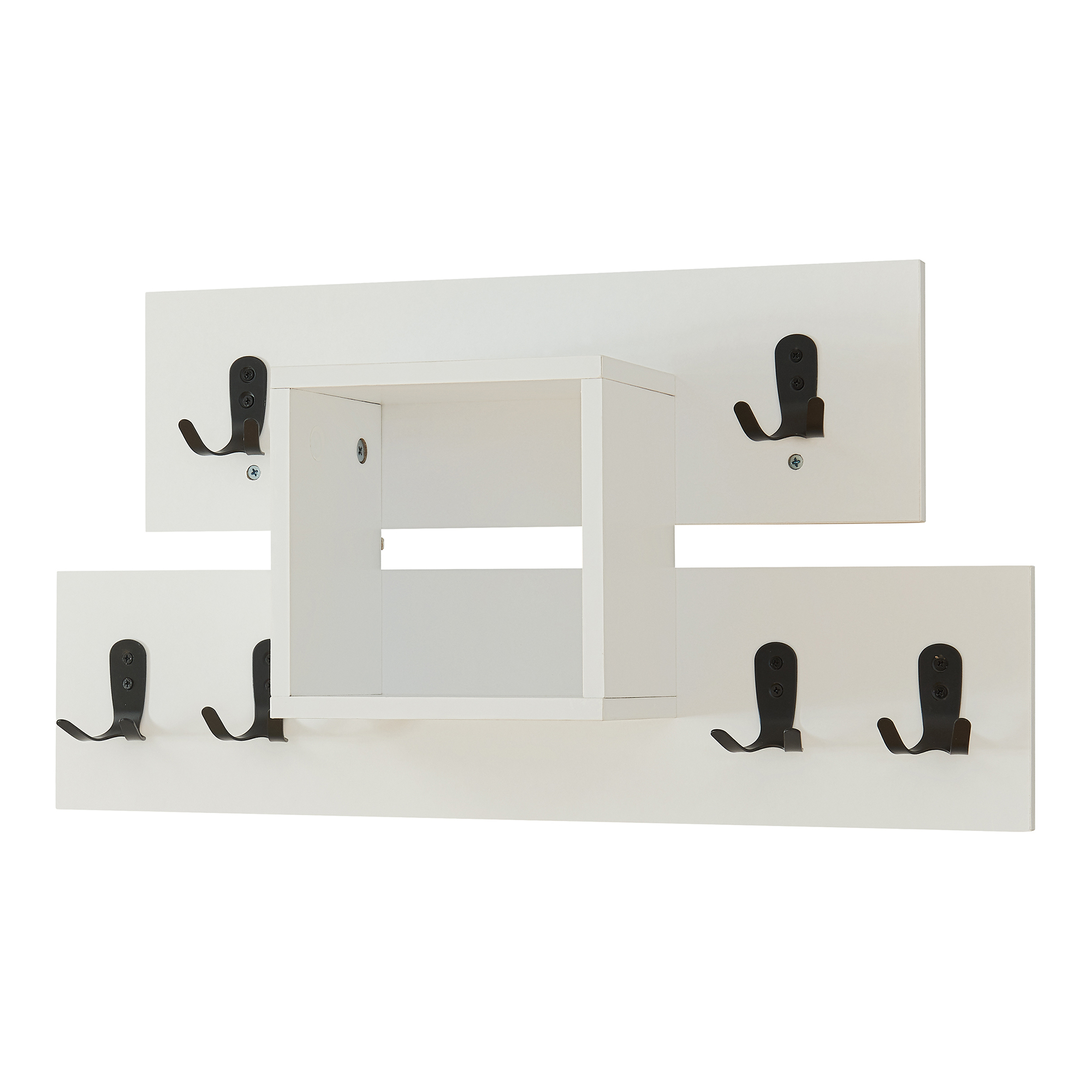 Prevăzut cu 6 cârlige duble, acest cuier de perete alb oferă suficient loc pentru jachete, genți, umbrele, eșarfe sau alte accesorii de zi cu zi. În plus, compartimentul deschis tip raft este ideal pentru obiecte decorative, plante mici, fotografii sau lucruri pe care vrei să le ai la îndemână.