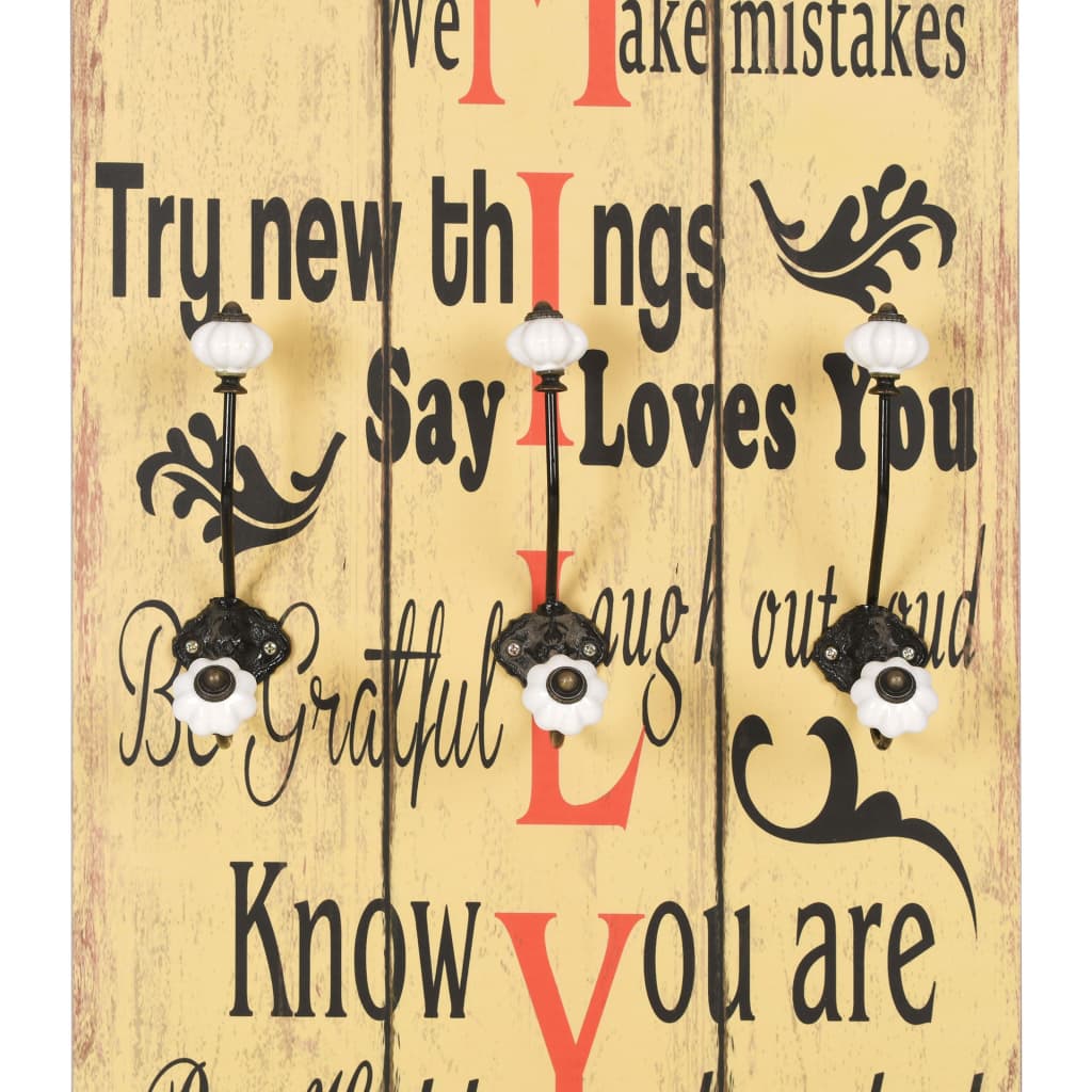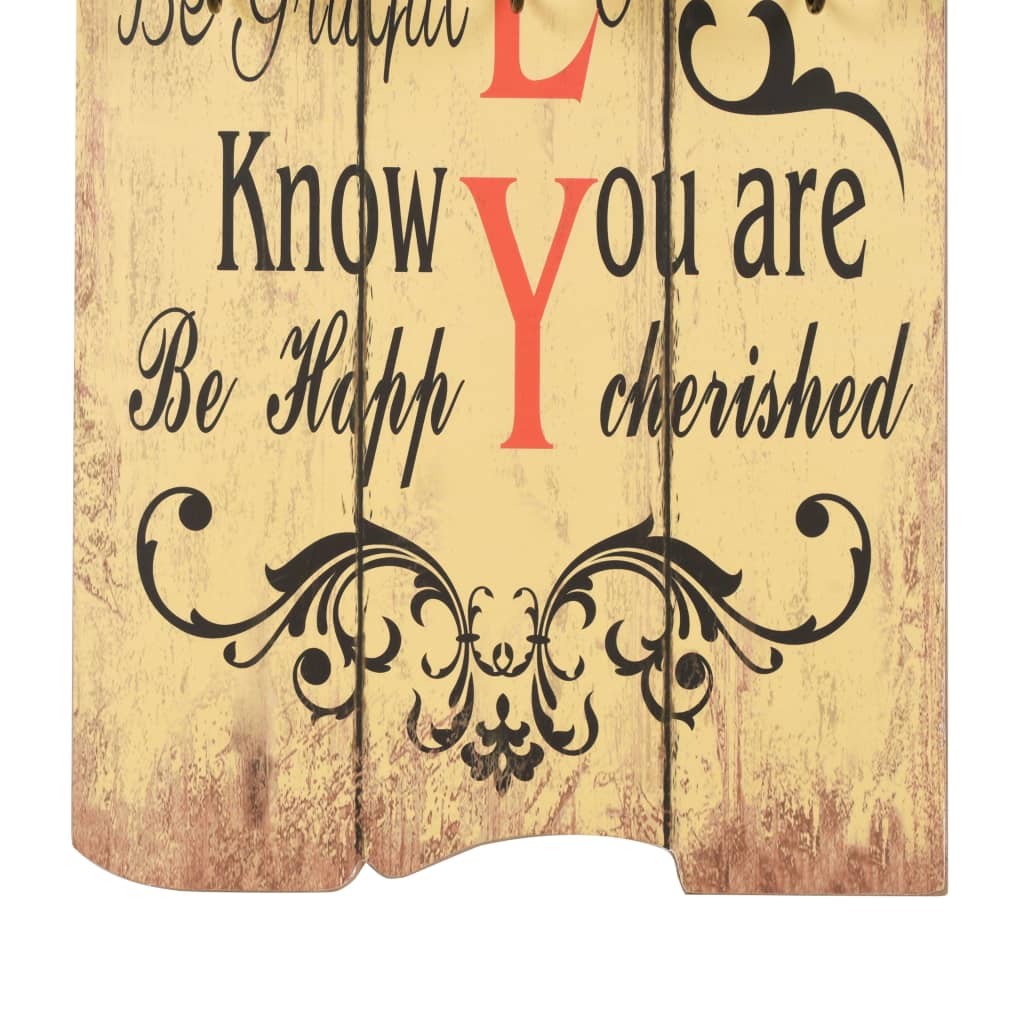 Cu mesajul său imprimat în stil vintage ,,Fiți recunoscători Iertați întotdeauna Împărtășiți Respectați-vă unul pe altul Arătați compasiune Facem greșeli Încercați lucruri noi Spuneți Te iubesc Fiți recunoscători Râdeți în hohote Sunteți prețuiți Fiți fericiți"; acest cuier de perete cu 6 cârlige va deveni un adevărat punct de atracție pe care oaspeții dvs. îl vor observa imediat.