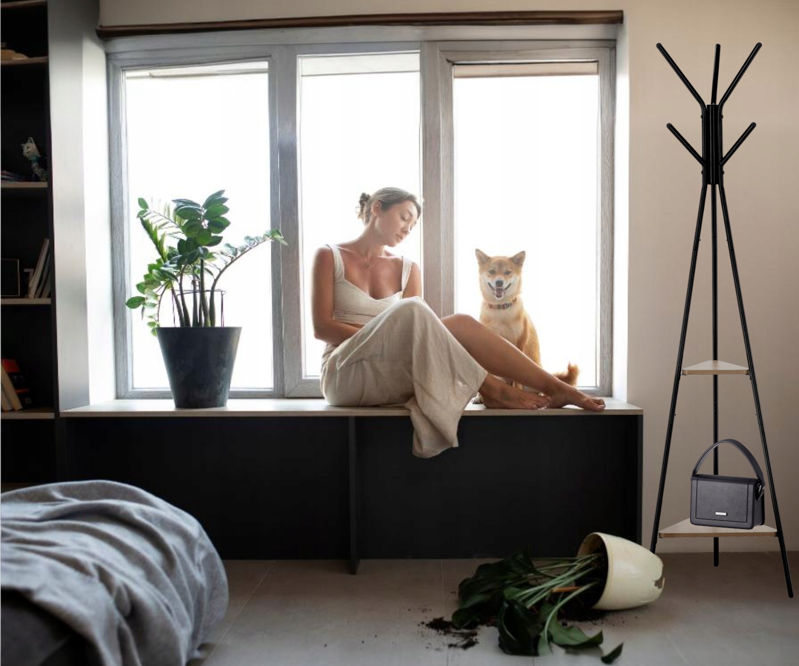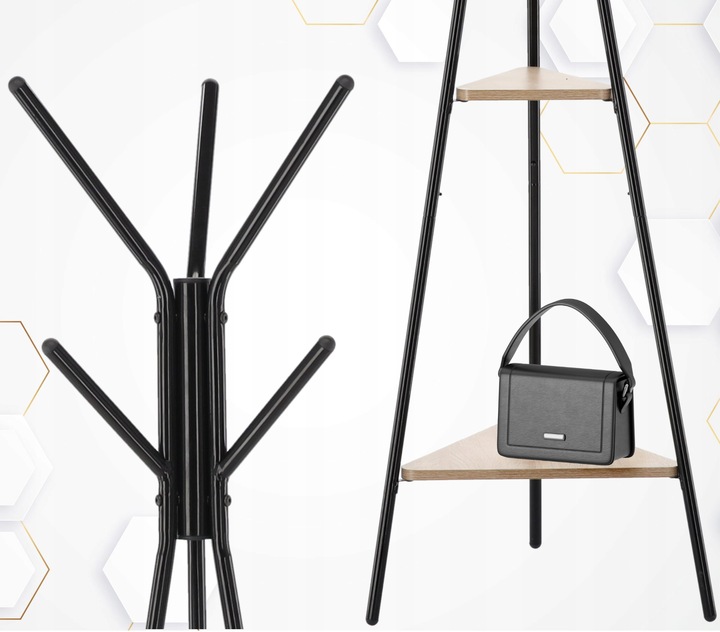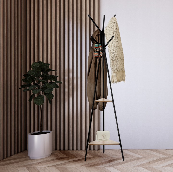 Inaltime: 180 cm - potrivita pentru depozitarea hainelor mai lungi si a mai multor accesorii. Culoare: Negru - universal si elegant, adaugand caracter interiorului. Material: Metal si MDF - o legatura durabila si solida care asigura stabilitatea structurii. Cuierul de sine statator este o solutie exceptional de practica si eleganta, care va functiona bine in orice casa sau birou. Constructia sa solida, de sine statatoare, permite o utilizare convenabila fara a fi nevoie sa gauriti in pereti, ceea ce este deosebit de important in spatiile inchiriate. Este usor de transportat, ceea ce il face extrem de versatil - il puteti amplasa in hol, dressing, dormitor sau birou, ajustandu-i pozitia la nevoile dumneavoastra curente. Acest cuier cu o inaltime de 180 cm ofera spatiu amplu pentru depozitarea diferitelor tipuri de imbracaminte exterioara, cum ar fi paltoane, jachete, esarfe, palarii si genti, iar baza sa stabila din MDF asigura durabilitate si soliditate chiar si sub sarcini mai grele. Rafturi: Cuierul este echipat cu doua rafturi practice care ii sporesc functionalitatea. Datorita lor, puteti depozita nu numai imbracaminte exterioara, ci si genti, palarii si alte accesorii mici pe care merita sa le aveti intotdeauna la indemana. Raftul inferior este ideal pentru genti mai mari, pastrand spatiul din hol sau din dressing ordonat, in timp ce raftul superior poate fi folosit pentru depozitarea obiectelor mai mici. Manere: Acest cuier cu o inaltime de 180 cm ofera spatiu amplu pentru depozitarea diferitelor tipuri de imbracaminte exterioara, cum ar fi paltoane, jachete, esarfe, palarii si genti, iar baza sa stabila din MDF asigura durabilitate si soliditate chiar si sub sarcini mai grele. Umerasul are 6 manere, ceea ce permite organizarea comoda a hainelor si faciliteaza pastrarea spatiului ordonat. Desing universal: Culoarea neagra a cuierului este o alegere universala si eleganta care confera interiorului un caracter modern. Datorita culorii sale neutre, cuierul se va potrivi armonios atat in amenajarile interioare deschise, cat si in cele intunecate, oferindu-le expresivitate. Este o solutie ideala pentru iubitorii de accesorii minimaliste, dar practice - designul sau elegant il face nu doar un element functional de echipament, ci si un decor elegant al camerei.