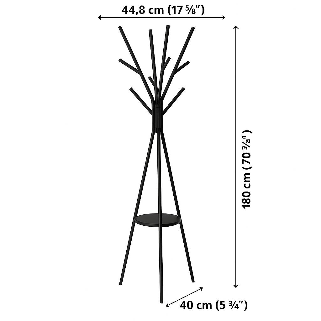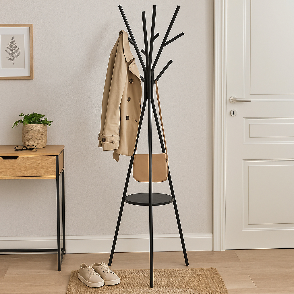 Cuier metalic 5Five cu 9 carlige, 45x40x180 cm, otel si MDF, negru Household NewTrend