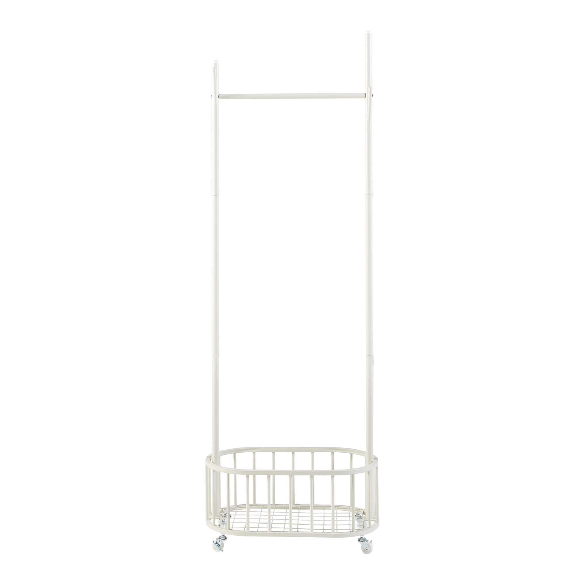 Descriere Cuier mobil oțel alb coș rufe