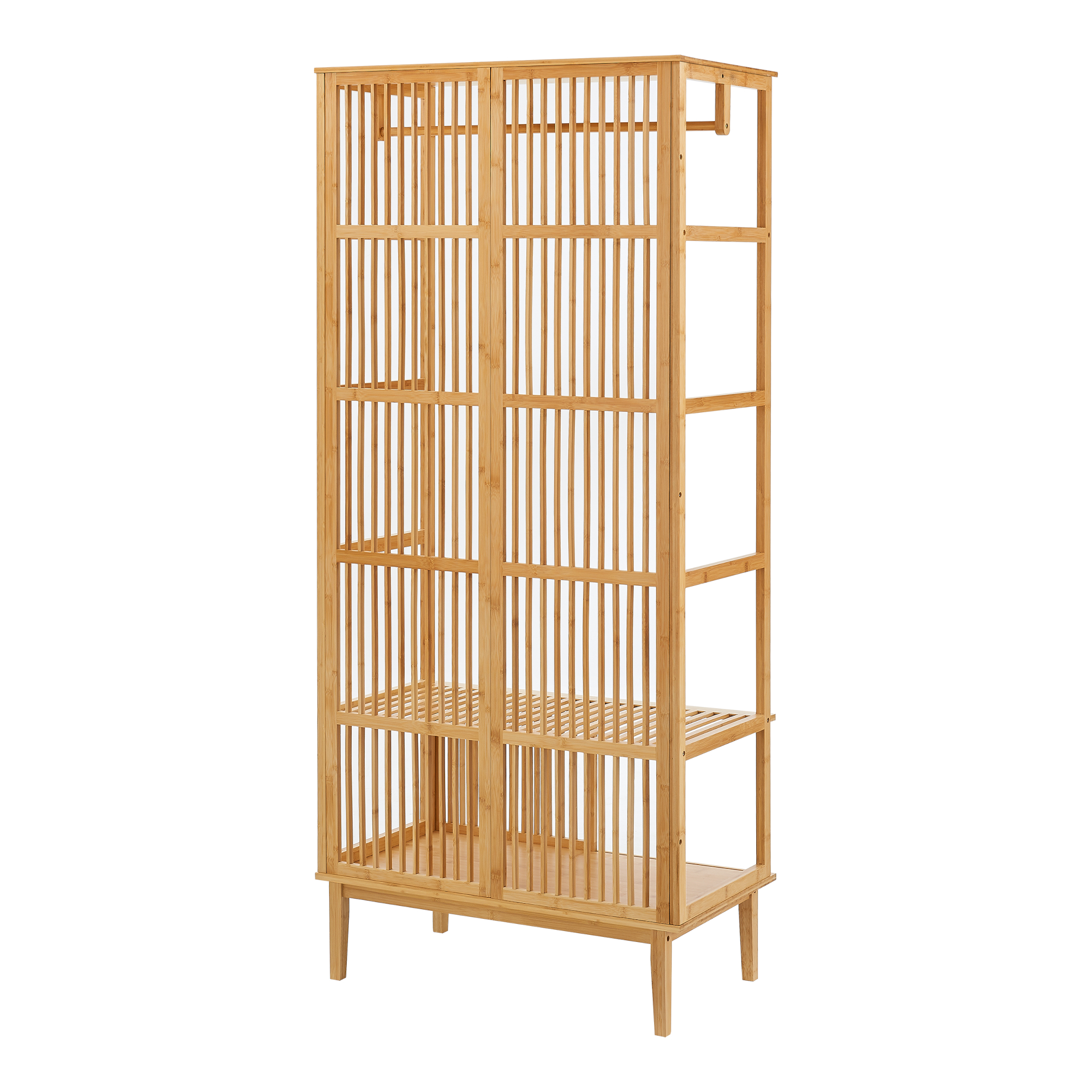 Cuier pentru haine din bambus cu rafturi și bară Vemb