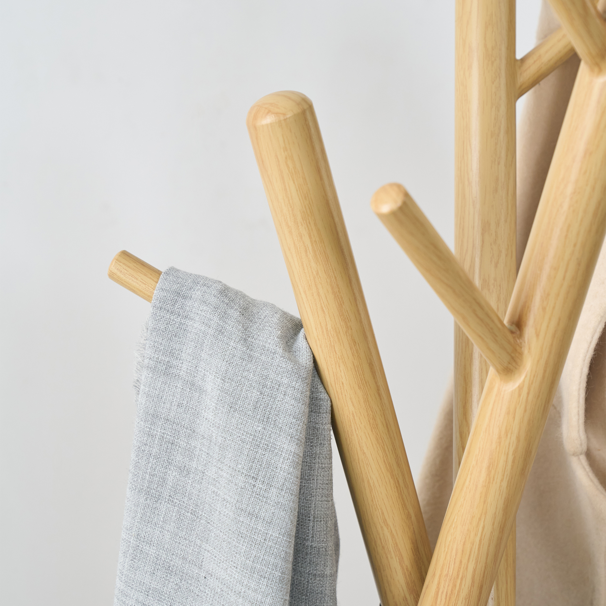 Datorită combinației elegante dintre oțel alb și aspectul de lemn al cârligelor, cuierul se integrează ușor în decoruri scandinave, moderne sau contemporane. Cele 5 cârlige permit agățarea ordonată a hainelor, genților sau rucsacurilor, astfel încât totul să fie la îndemână și bine organizat.