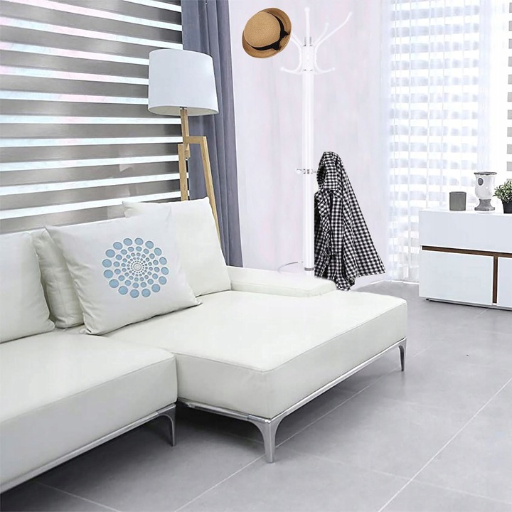 Cuier tip pom din metal cu baza de marmura, 14 agatatoare, 176cm, alb Household NewTrend