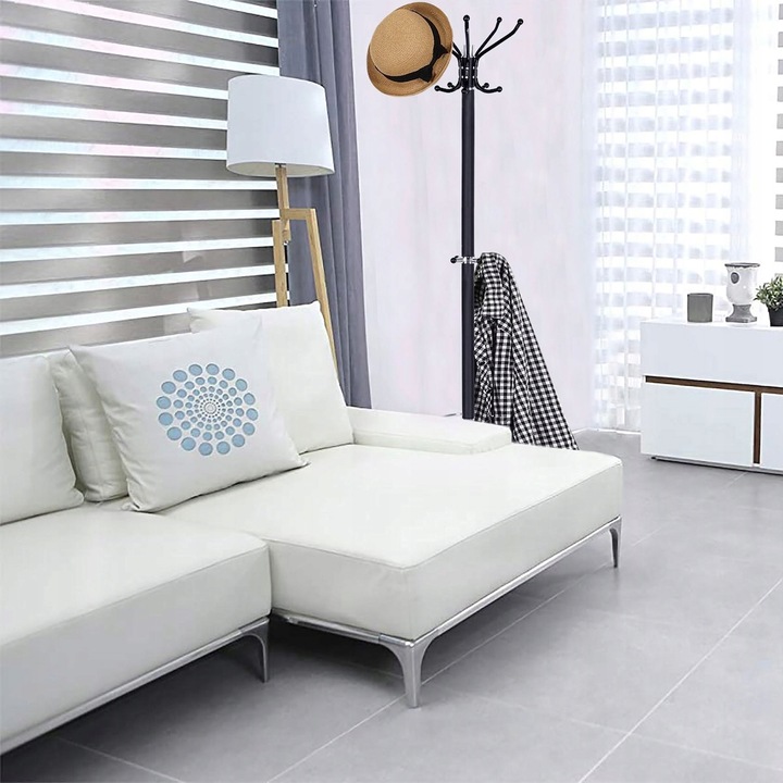 Cuier tip pom din metal cu baza de marmura, 14 agatatoare, 176cm, negru Household NewTrend
