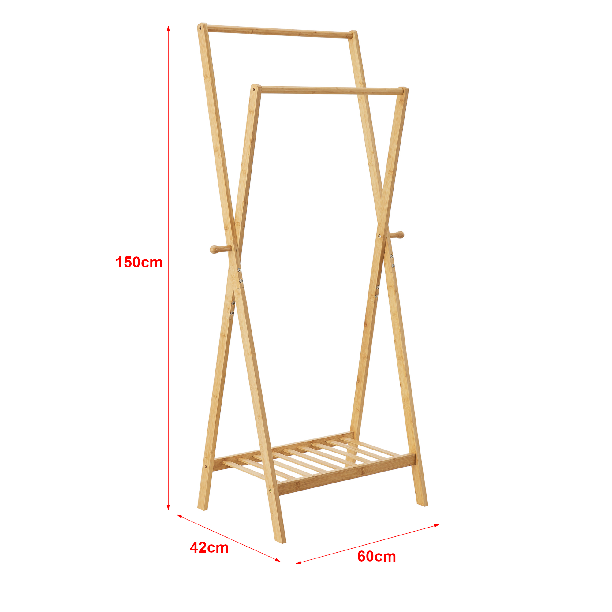 Cuier tip stander din bambus cu 2 bare și raft Keitele 150x60x42 cm