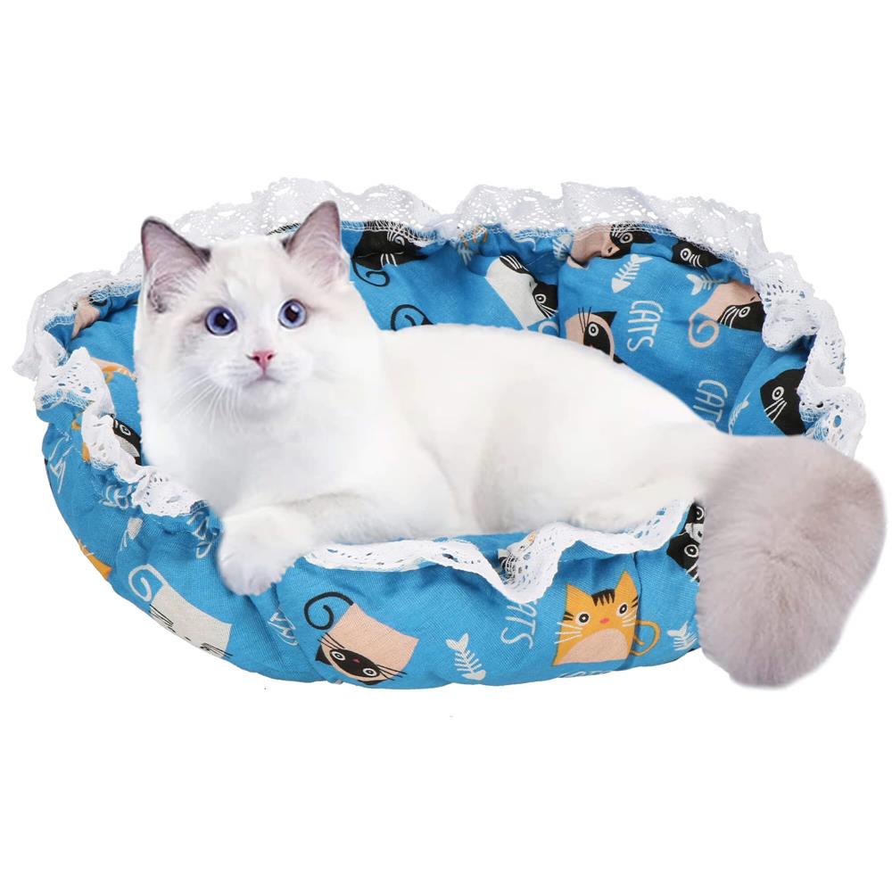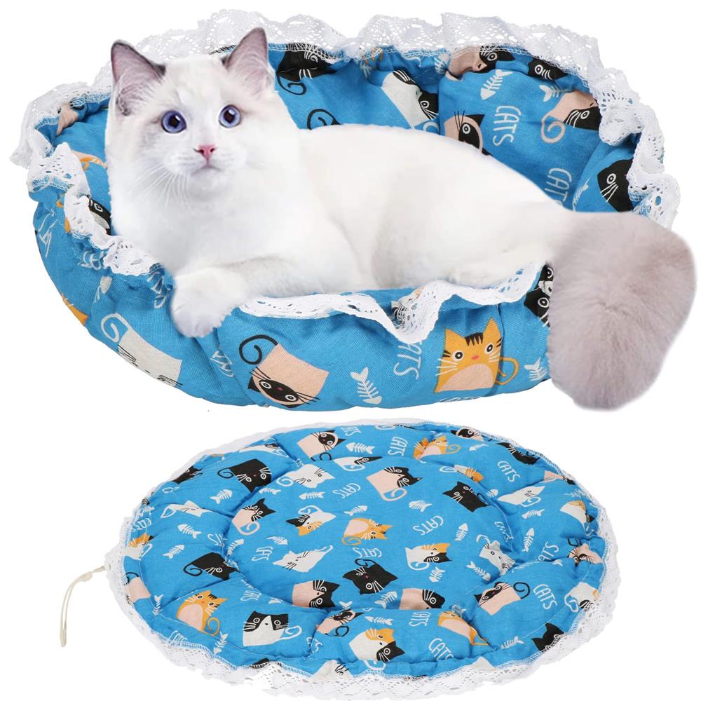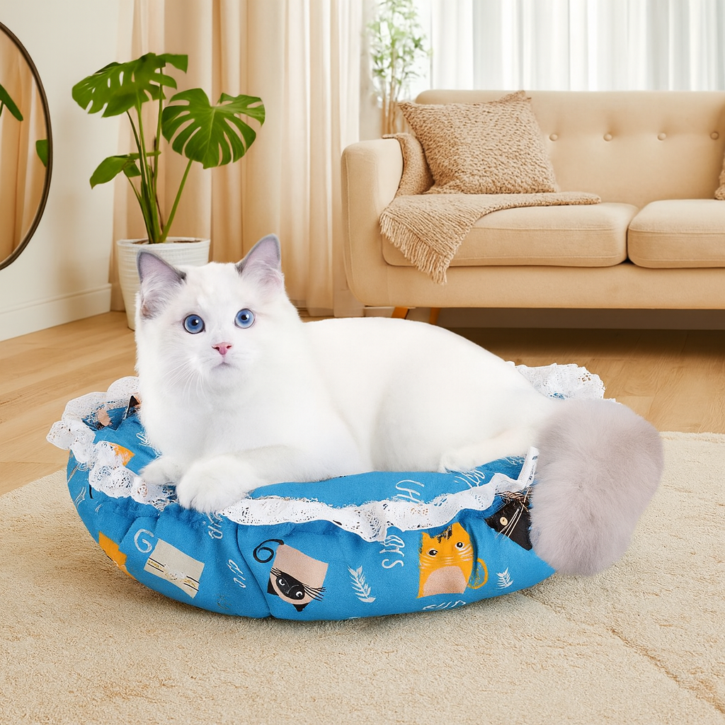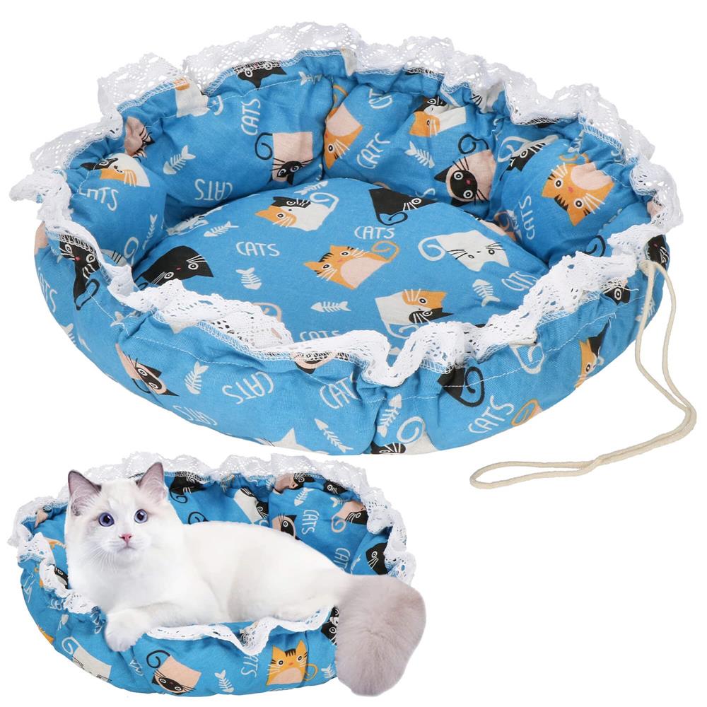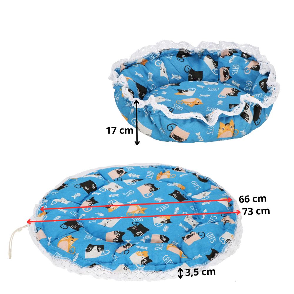 Ofera-i felinei tale un loc comod si versatil cu acest culcus transformabil pentru pisici, ideal pentru relaxare zilnica, somn si momente de rasfat. Modelul 2 in 1 poate fi folosit ca saltea pentru pisici atunci cand este deschis sau ca pat pentru pisici cu pereti atunci cand snurul este strans. Materialul din poliester este moale si placut la atingere, iar designul albastru cu imprimeu jucaus se integreaza usor in orice locuinta.