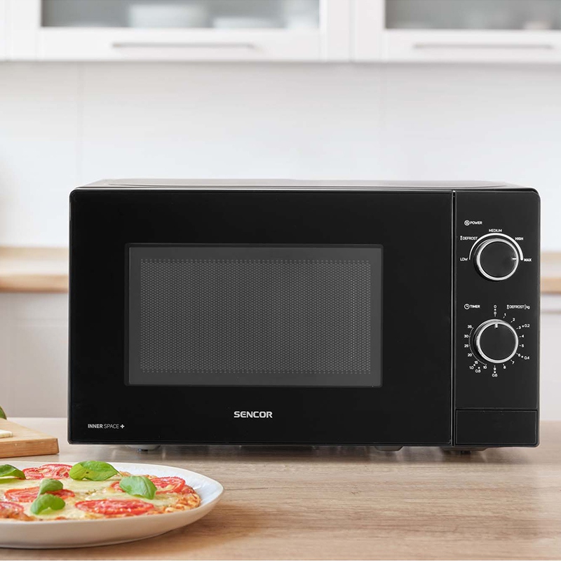 Cuptorul cu microunde Sencor 20L, 700W este o alegere practica pentru reincalzire rapida, gatit simplu si dezghetare in siguranta, zi de zi. Cu interior emailat, se curata usor, iar controlul manual cu doua butoane il face foarte intuitiv.
