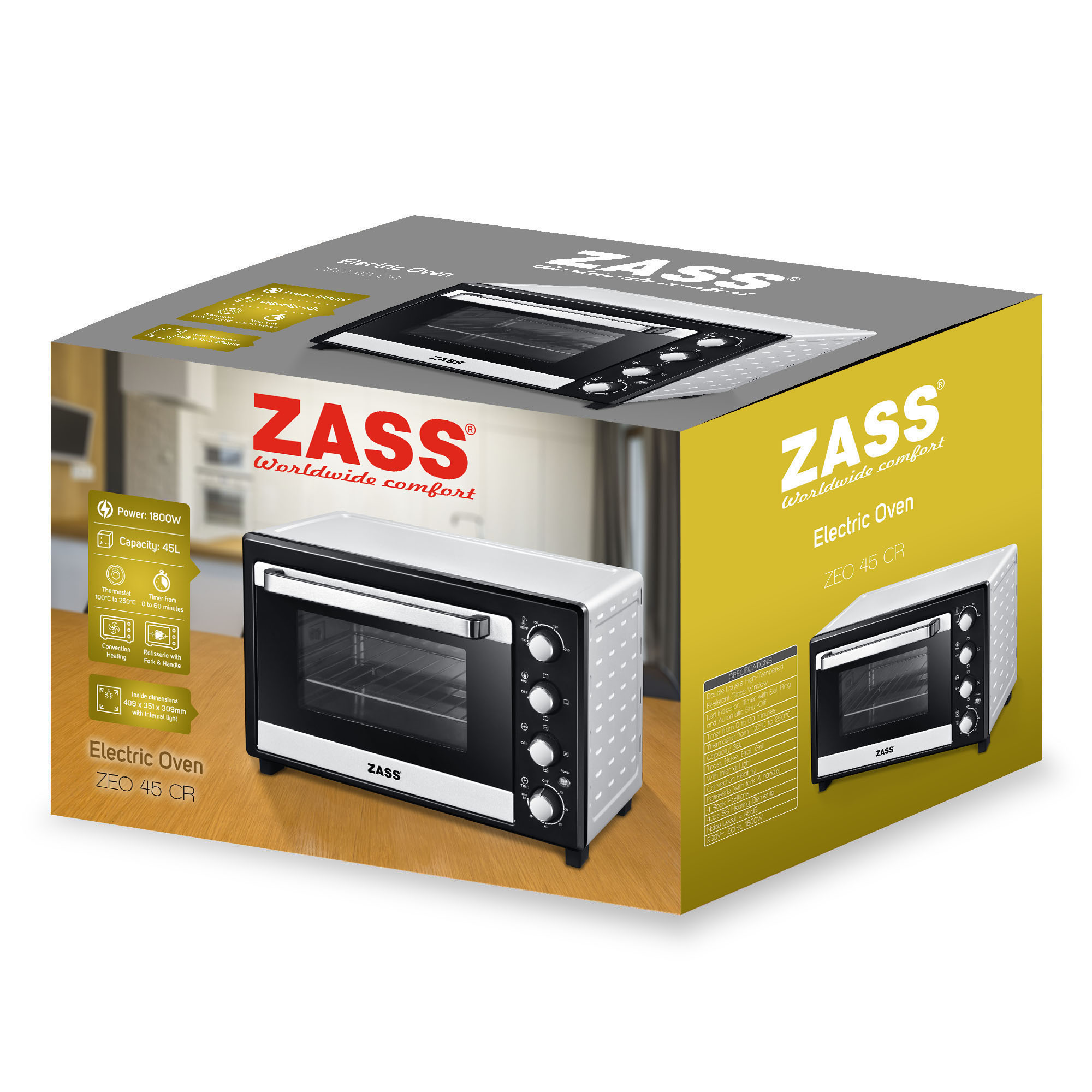 Cuptorul electric cu convecție și rotisor Zass ZEO 45 CR este alegerea potrivită pentru gătit rapid și uniform, acasă. Cu o capacitate generoasă de 45 litri, putere de 1800W și funcții variate de coacere, grill, prăjire cu convecție și rotisor, acest cuptor electric te ajută să pregătești ușor fripturi, pizza, produse de patiserie sau garnituri delicioase.