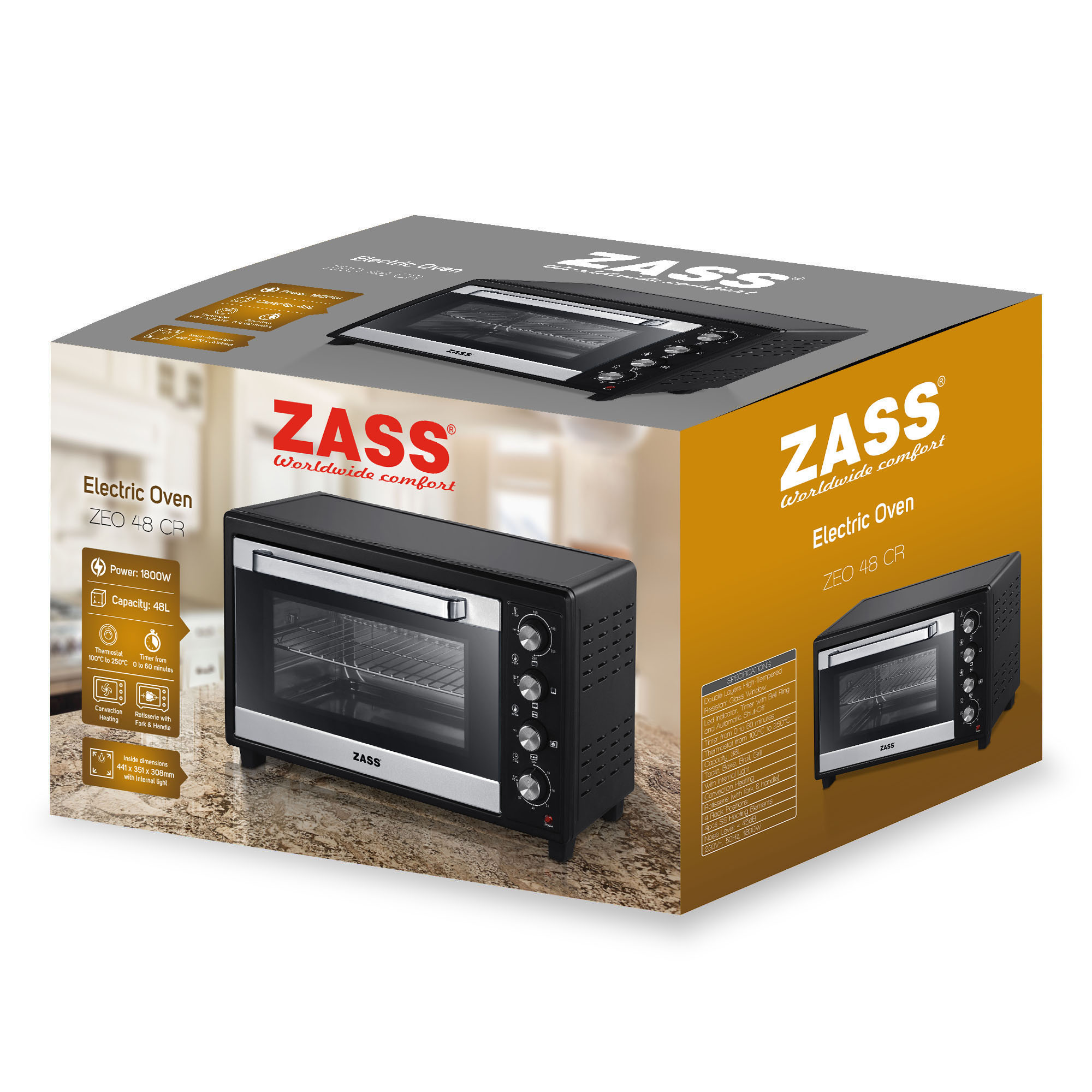 Cuptor electric cu convectie si rotisor ZASS ZEO 48 CR, 48L, 1800W