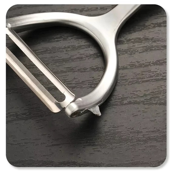 Recomandat pentru curățarea rapidă a legumelor (morcovi, cartofi, dovlecei) și a fructelor (mere, pere). Glisează lama pe suprafața alimentului cu mișcări scurte și controlate.