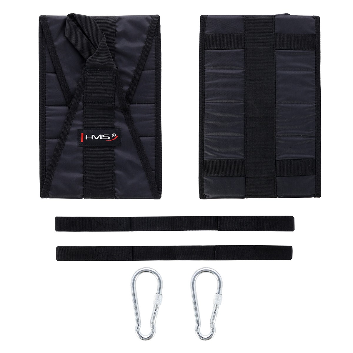 Curele pentru abdomene HMS F4439 faciliteaza antrenarea muschilor abdominali cu ajutorul unei barei. Carabinele puternice rezista la sarcini grele si vor dura multi ani. Simplitatea si eficacitatea ridicata a curelelor fac sa merita sa le includeti in programul dvs. de antrenament. Curele pentru abdomene HMS F4439 ajuta la cresterea implicarii musculaturii abdominale in timp ce amelioreaza tensiunea de pe coloana vertebrala. In acest fel obtinem rezultate mult mai bune si ca urmare, motivare si satisfactie cu antrenamentul. Constructia solida si durabila va permite sa faceti exercitii fizice fara sa va preocupati de siguranta. Setul include doua curele din nailon rezistente. Forma lor speciala si finisajul confortabil ajuta la evitarea ranilor sau abraziunilor tipice. Curelele au carabine din aluminiu pentru conectarea la orice bara.