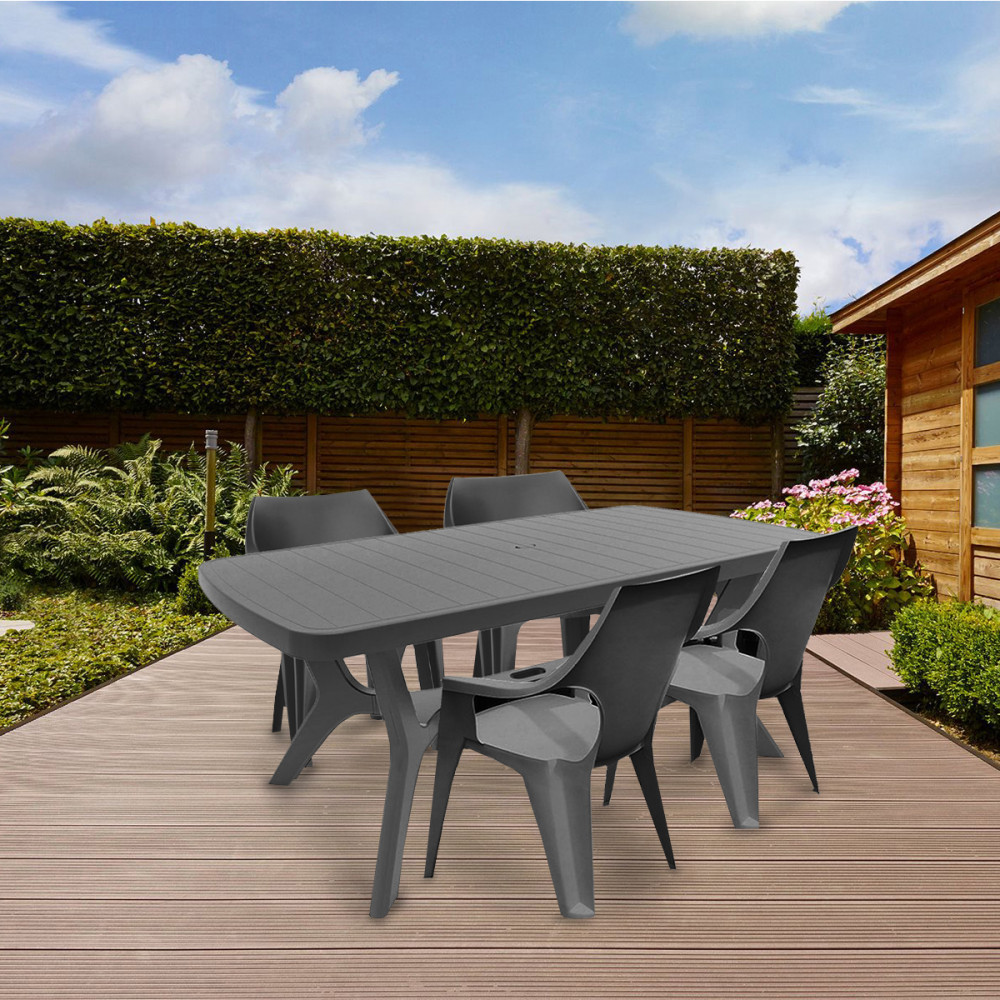 Structura puternică și designul elegant, clasic sunt caracteristicile mesei. Ideal pentru întâlniri de familie și întâlniri cu prietenii. Designul universal permite utilizarea mesei cu diferite modele de scaune. Este durabil și rezistent la influențele mediului și la radiațiile UV.