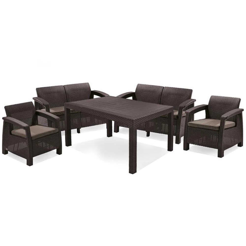 Mobila nu necesită întreținere sau tratamente speciale de îngrijire. Ușor de spălat - doar apă și, eventual, un detergent blând. Pernele sunt cu fermoar, detașabile și lavabile. Pot fi ținute afară tot timpul anului, dar dacă vrei să prelungești durata de viață a mobilei, merită să o ascunzi pe timpul iernii. Dacă nu au această opțiune, e suficient să o acopere sau pur și simplu să o ascundă sub un acoperiș. Unele elemente ale setului Corfu Fiesta sunt turnate prin injecție din fabrică.