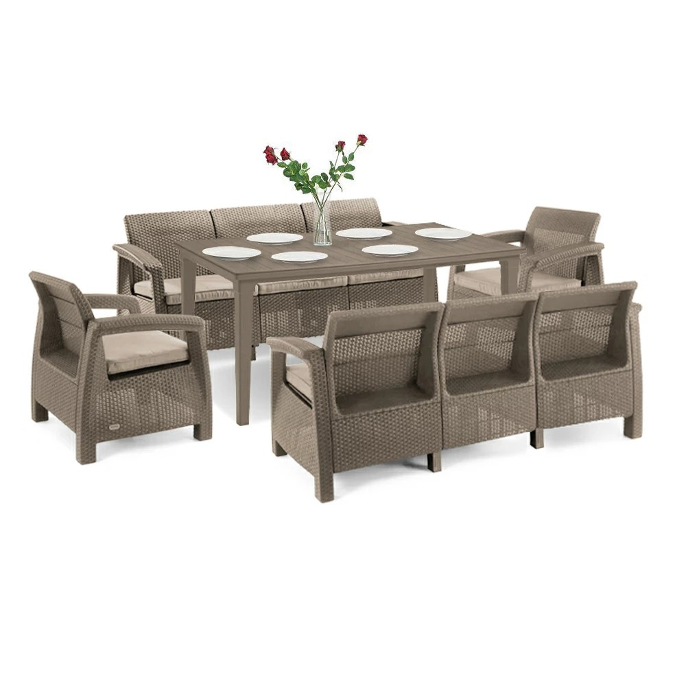 La prima vedere, poate părea că mobila este fabricată din ratan, dar de fapt este fabricată dintr-un plastic de înaltă calitate, care poate rezista la condiții meteorologice extreme. Pernele plate, cotierele late și spătarele conturate asigură confortul scaunelor și canapelelor. Producătorul de mobilă este marca Curver, care produce mobilier de grădină de înaltă calitate din plastic turnat prin injecție. Operează într-un grup cu mărcile bine-cunoscute și populare Keter și Allibert din Polonia.