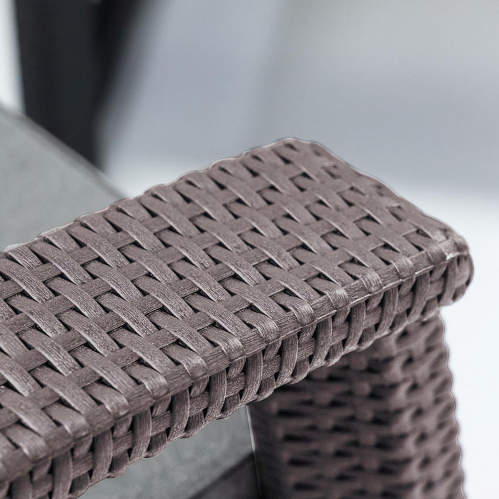 Setul practic de mobilier de grădină din plastic Corfu Relax Quartet, culoare grafit, este o combinație a mai multor piese de mobilier. Două fotolii și un colțar spațios au spătare frumos conturate și cotiere confortabile. Setul include o măsuță de cafea practică unde puteți lua cina în aer liber cu familia. Canapeaua și fotoliile de colț sunt dotate cu perne confortabile, cu huse de pernă cu fermoar, astfel încât husele de pernă pot fi spălate cu ușurință în mașina de spălat. În plus, o caracteristică practică a setului de grădină prezentat cu o masă pătrată este că cotierele sunt la o înălțime care vă permite să plasați fotolii sub masă, ceea ce economisește spațiu.