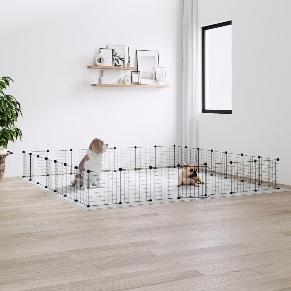 Cușcă animale de companie cu ușă 28 panouri negru 35x35 cm oțel GartenMobel Dekor